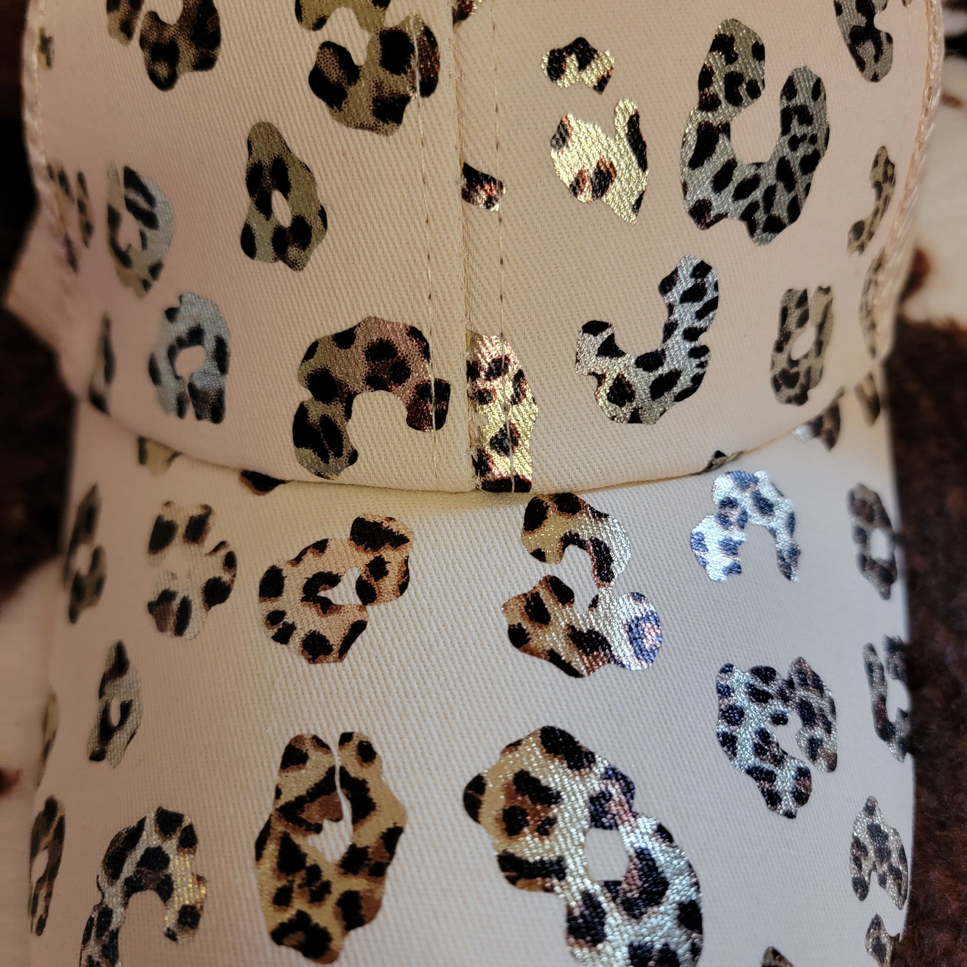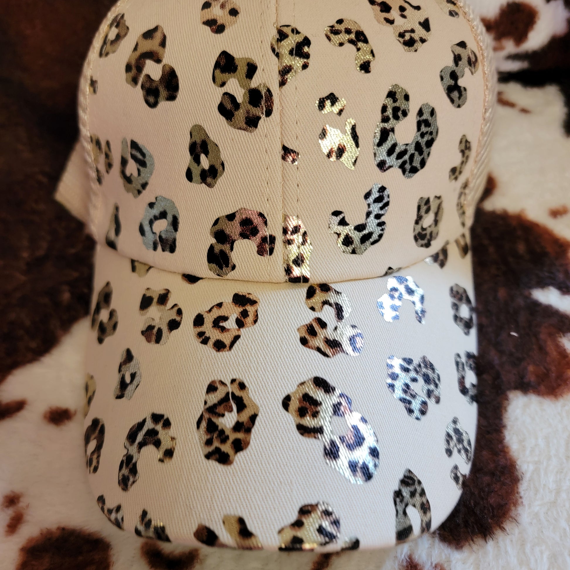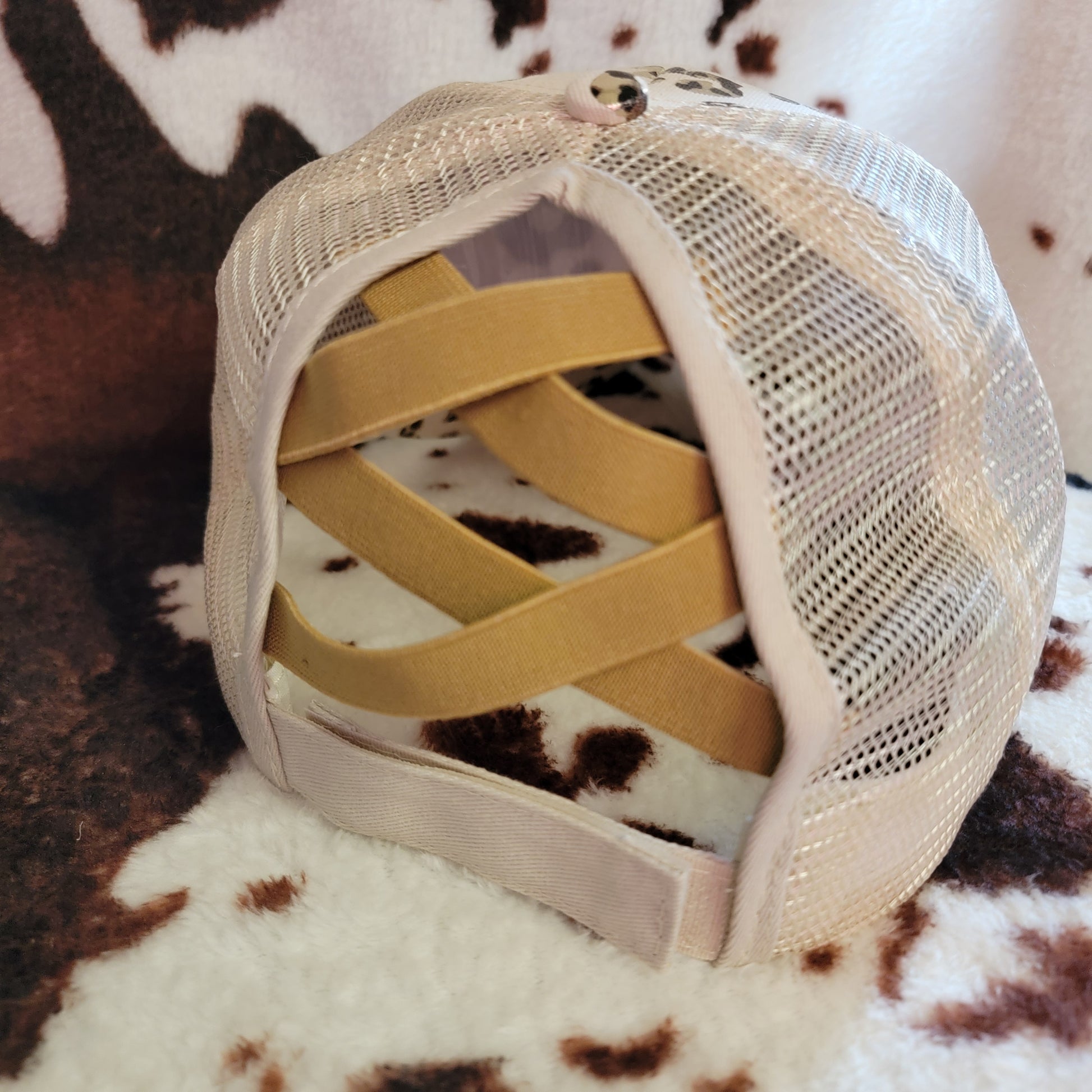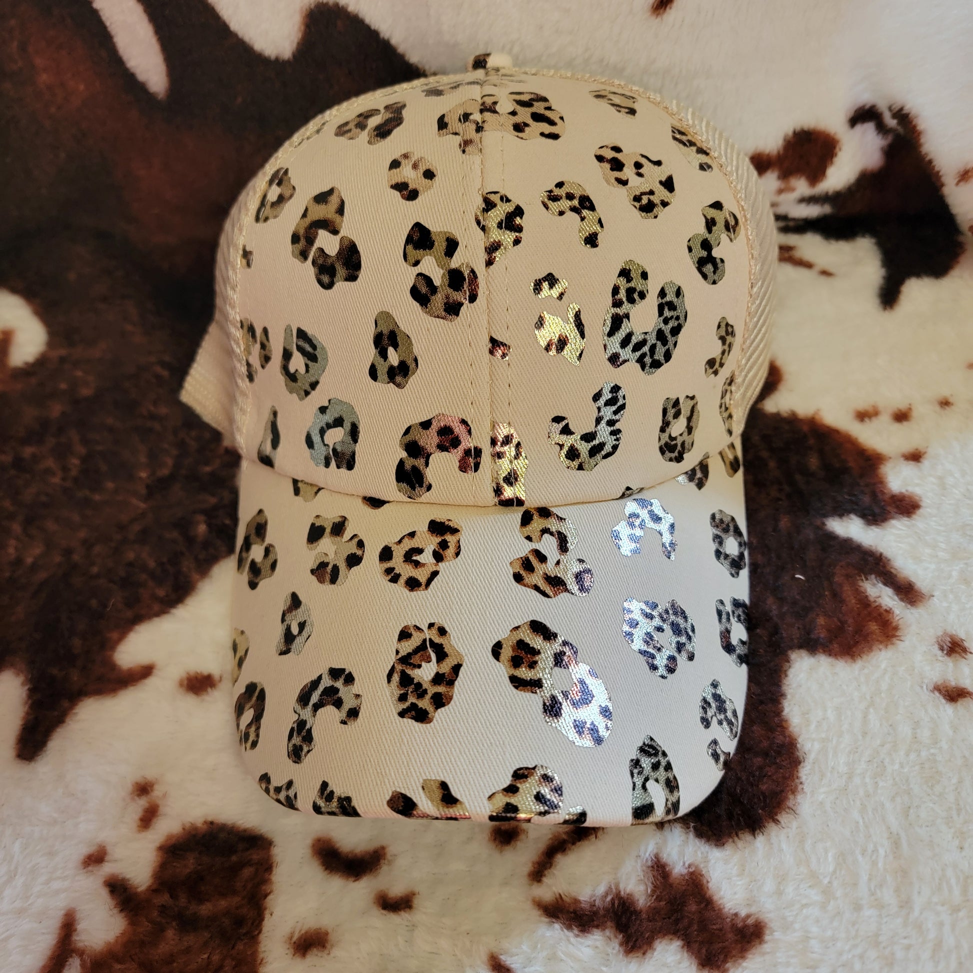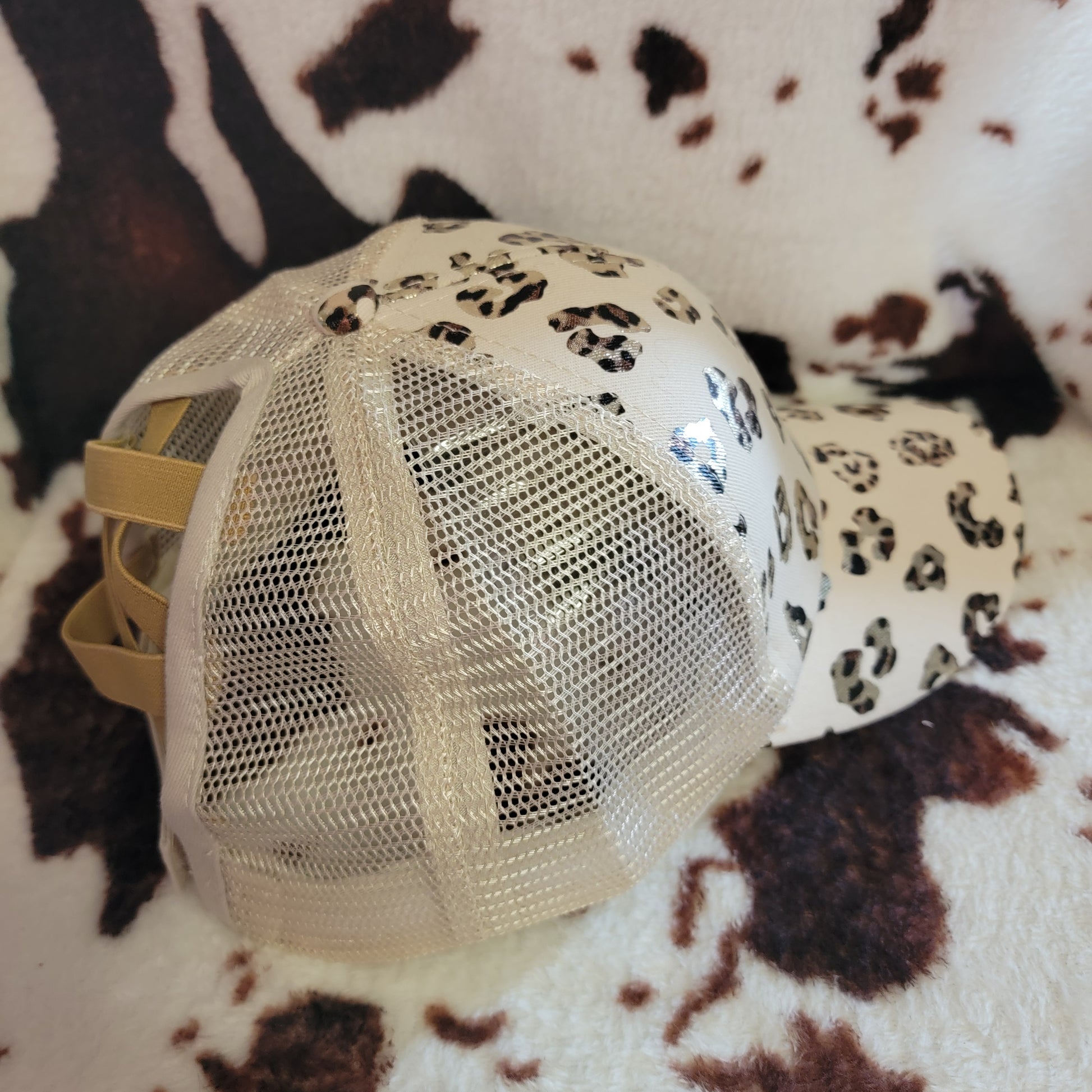 Animal Print Cream Criss Cross Ponytail Hat