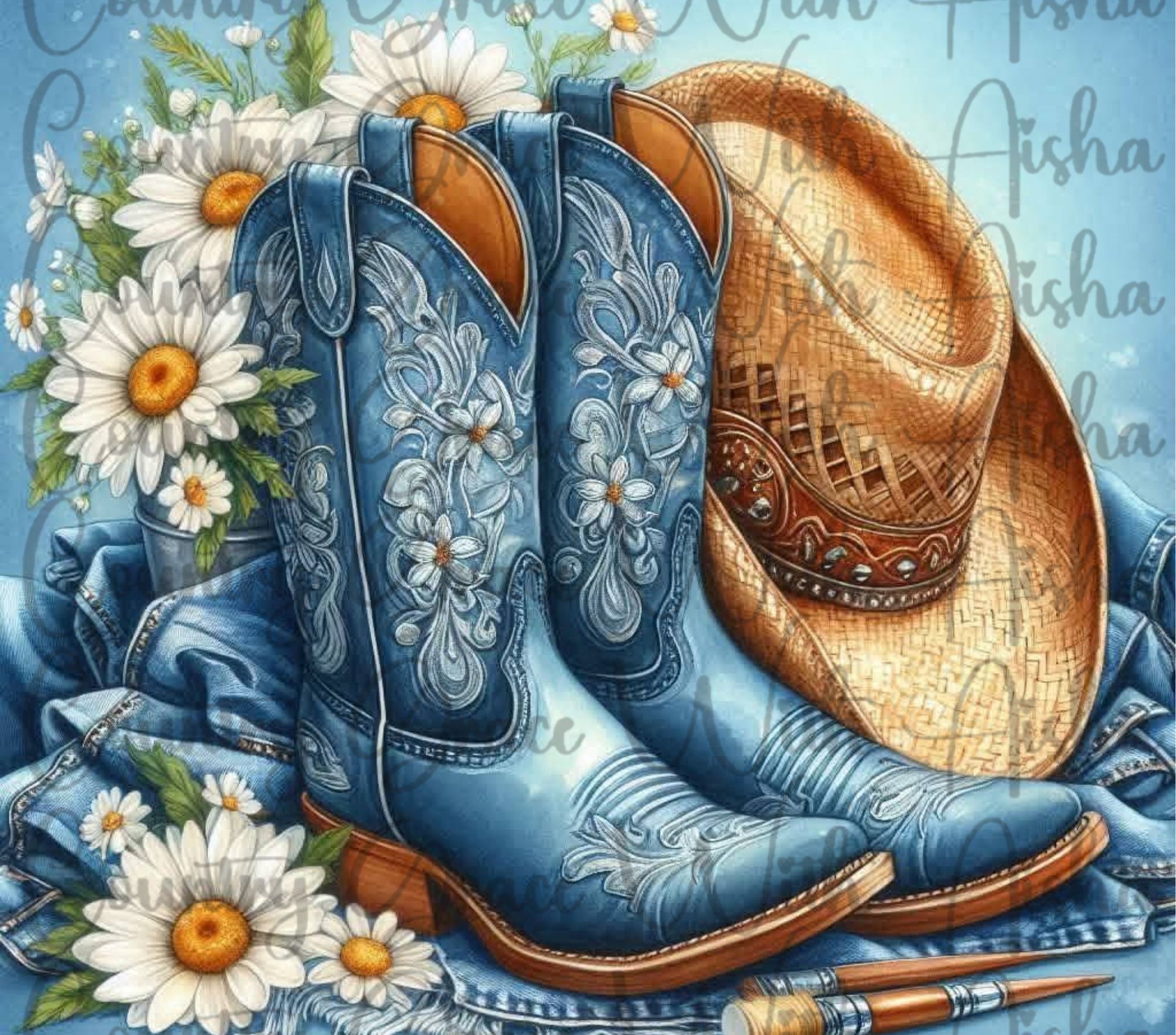 Boots Western 20oz Skinny Tumbler Sublimation Wrap