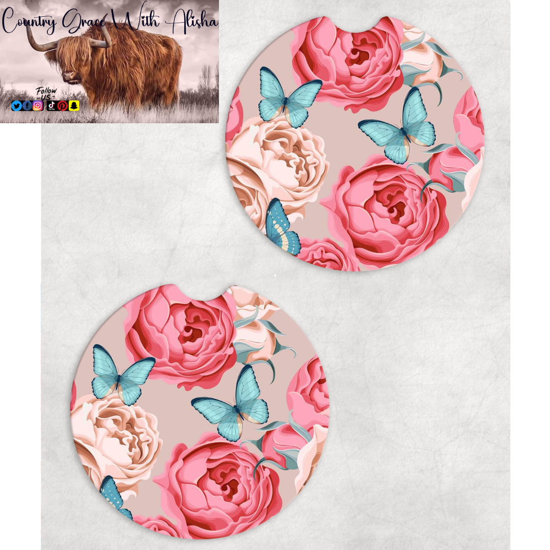 Butterfly Rose Neoprene Car Coasters