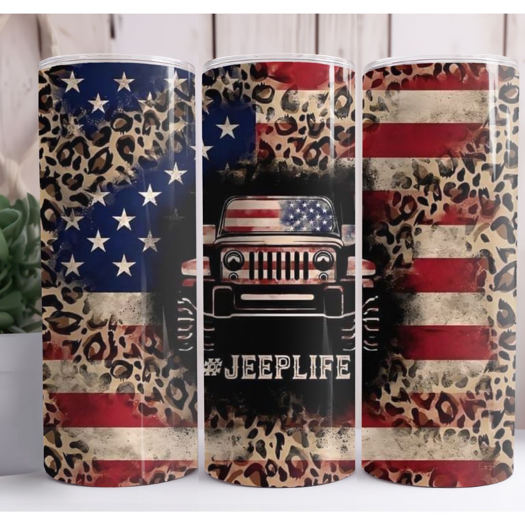 Sip with passion for the open road on your Flag Jeep Life Custom 20oz Skinny Tumbler. Handcrafted by Country Grace With Alisha and sublimation printed, this BPA-free stainless steel tumbler keeps your drinks hot or cold in style. Includes straw and lid so you can take the adventure with you! What are you waiting for? Drink up the adventure!