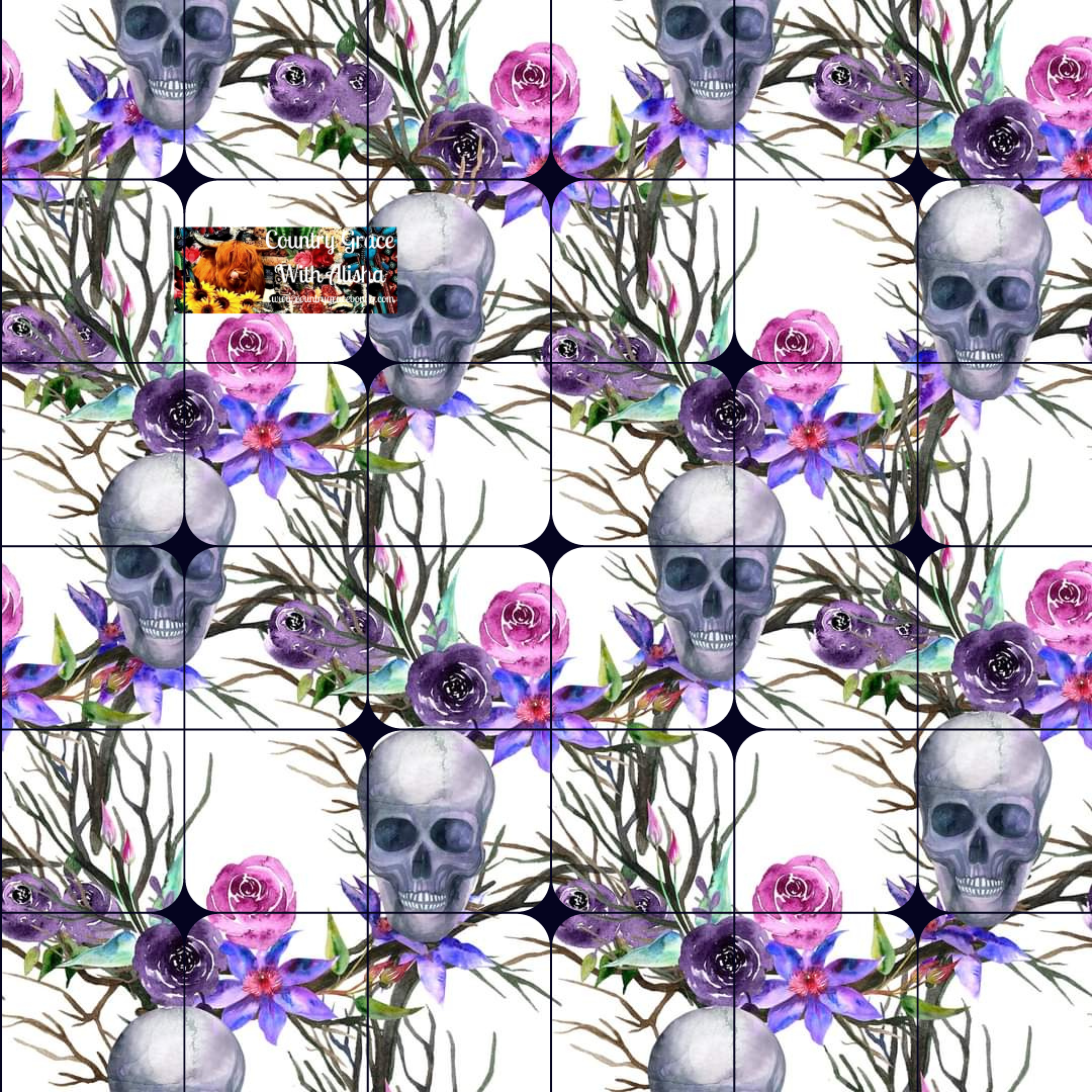 Floral Skulls Full Page Ready to Press Sublimation Transfer