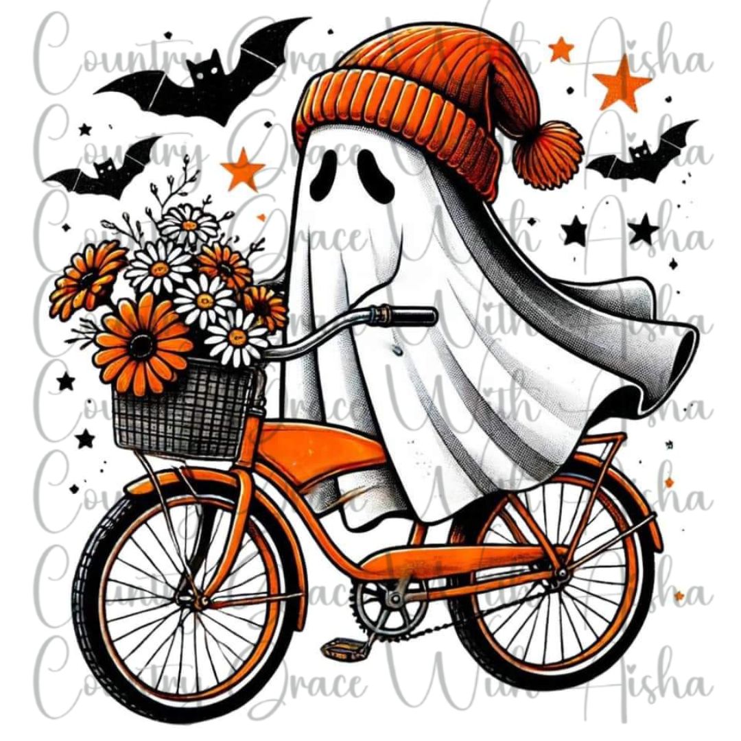 Ghost Bike Halloween Ready to Press Sublimation Transfer