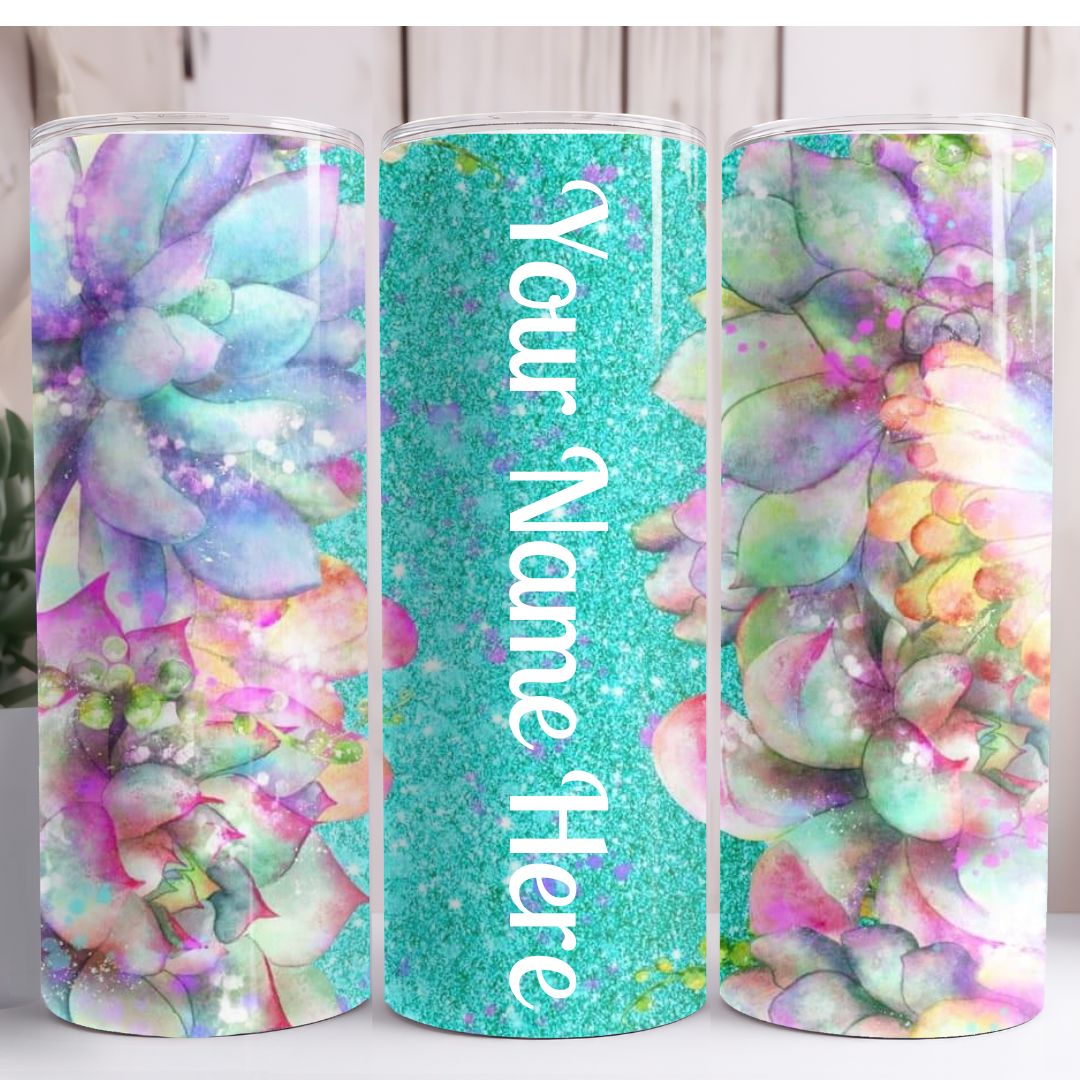 Green Floral Personalized 20oz Skinny Tumbler