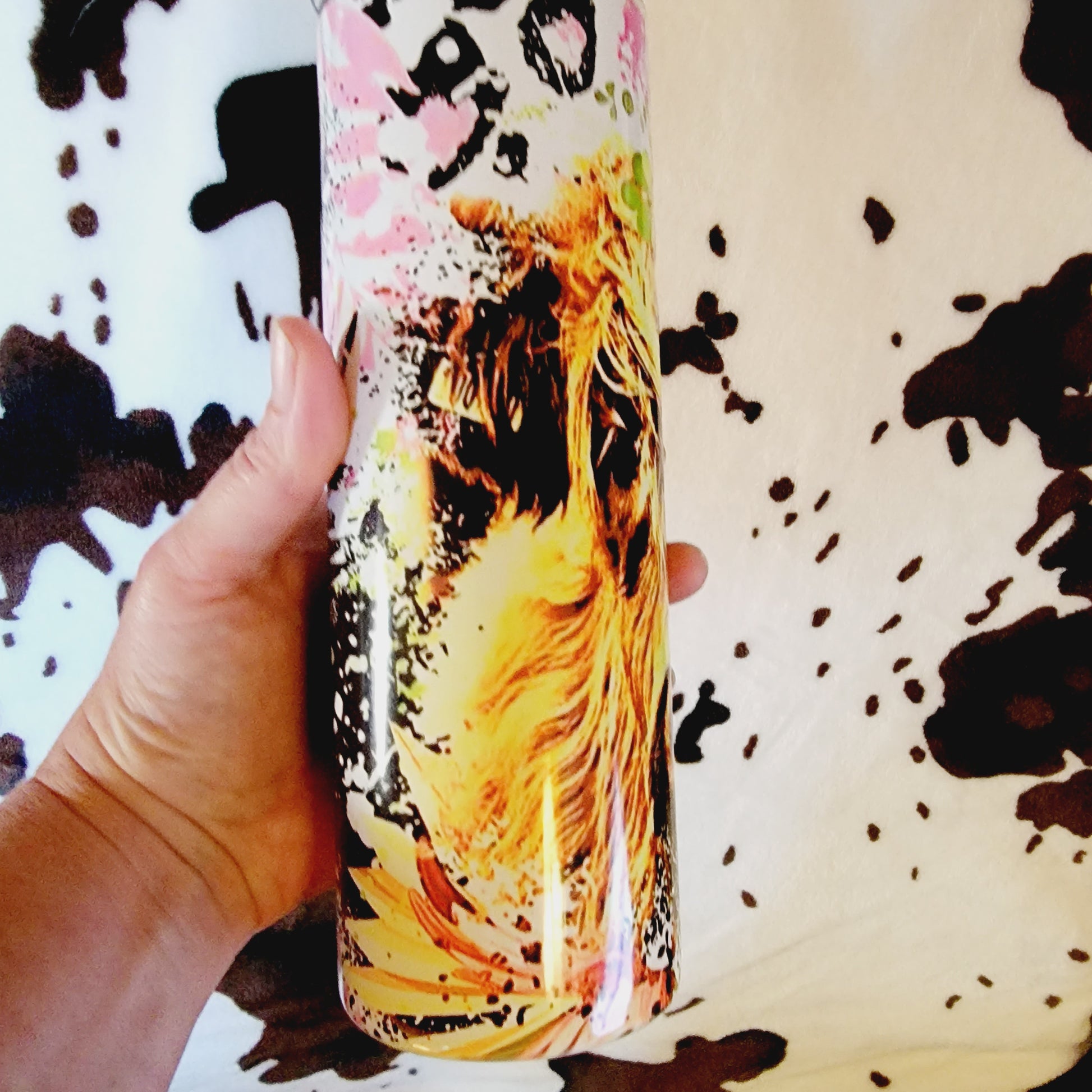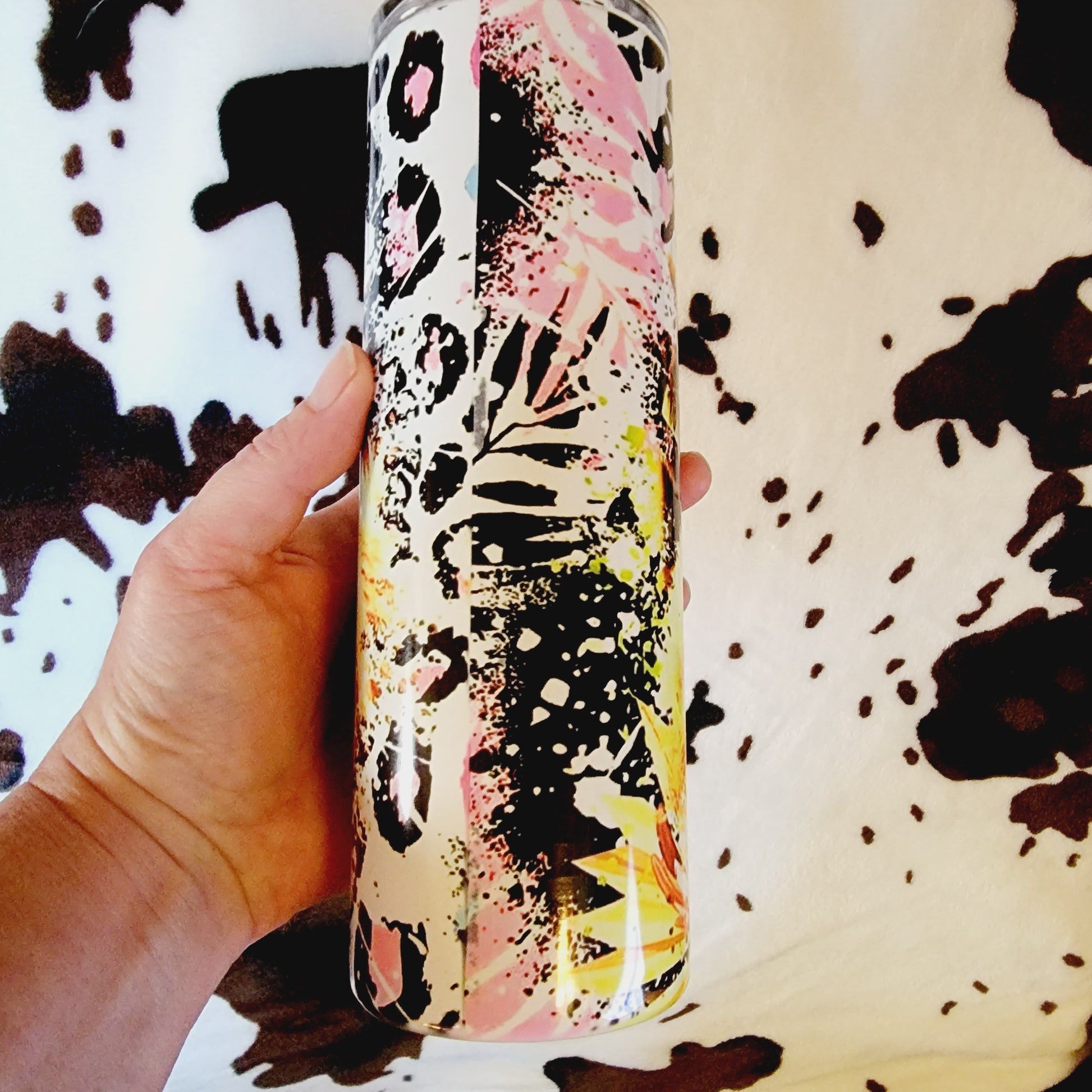 This custom-designed 20oz skinny sublimation tumbler is a double-walled stainless steel tumbler, so it is perfect for hot or cold drinks! The tumbler includes a tight lid and a reusable straw. Skinny Tumblers are BPA-free.