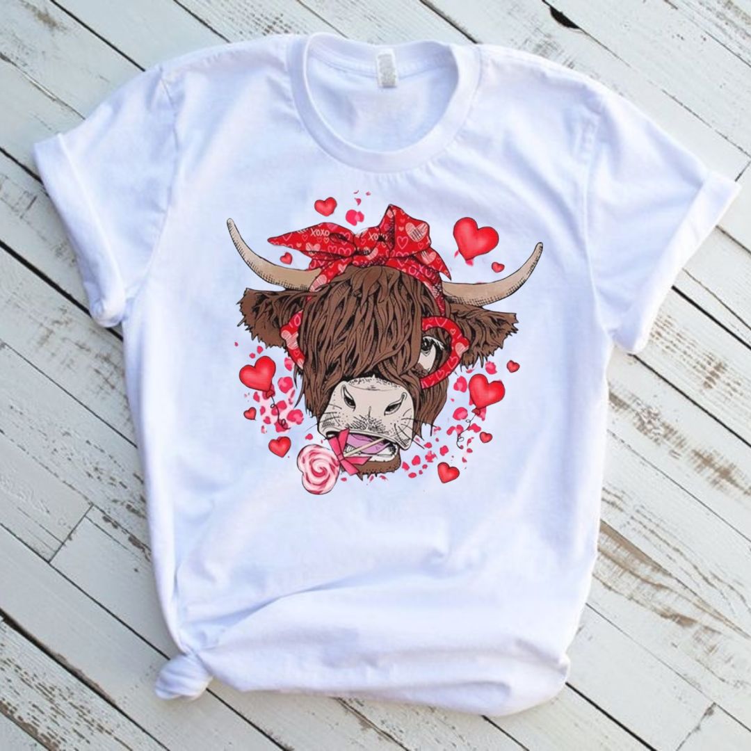 Highland Cow Valentines Day Graphic T-Shirt