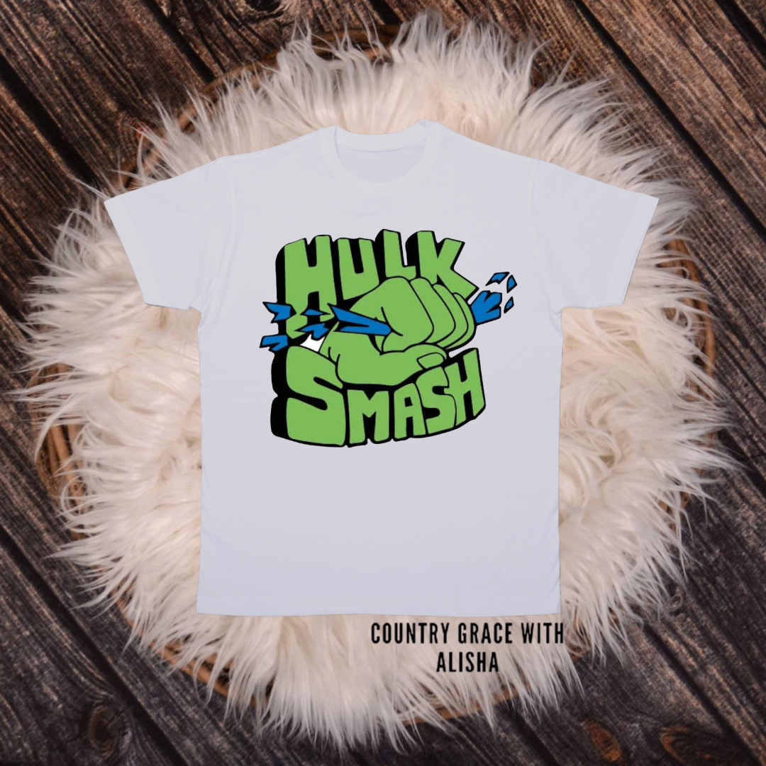 Hulk Smash Kids TShirt White Short Sleeve Graphic Tee