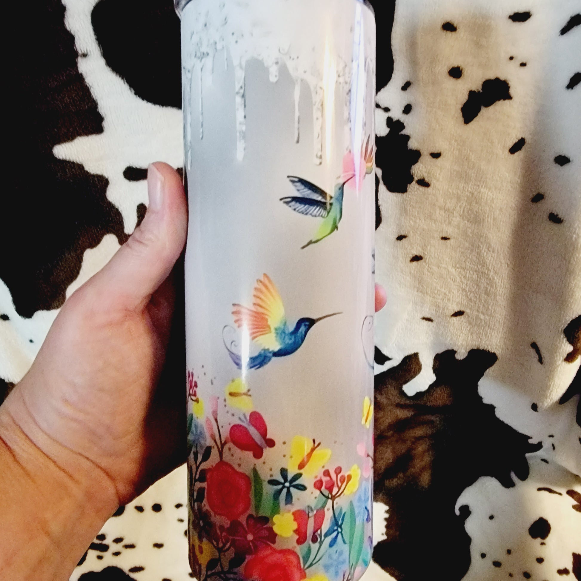 This custom 20oz Hummingbird tumbler is designed to keep your drinks hot or cold while adding a bit of style to your day. Handmade with love by Country Grace with Alisha, it’s made of BPA-Free stainless steel and features a beautiful sublimation print. Comes with a lid and straw to complete the set. Start your day right with this custom tumbler.