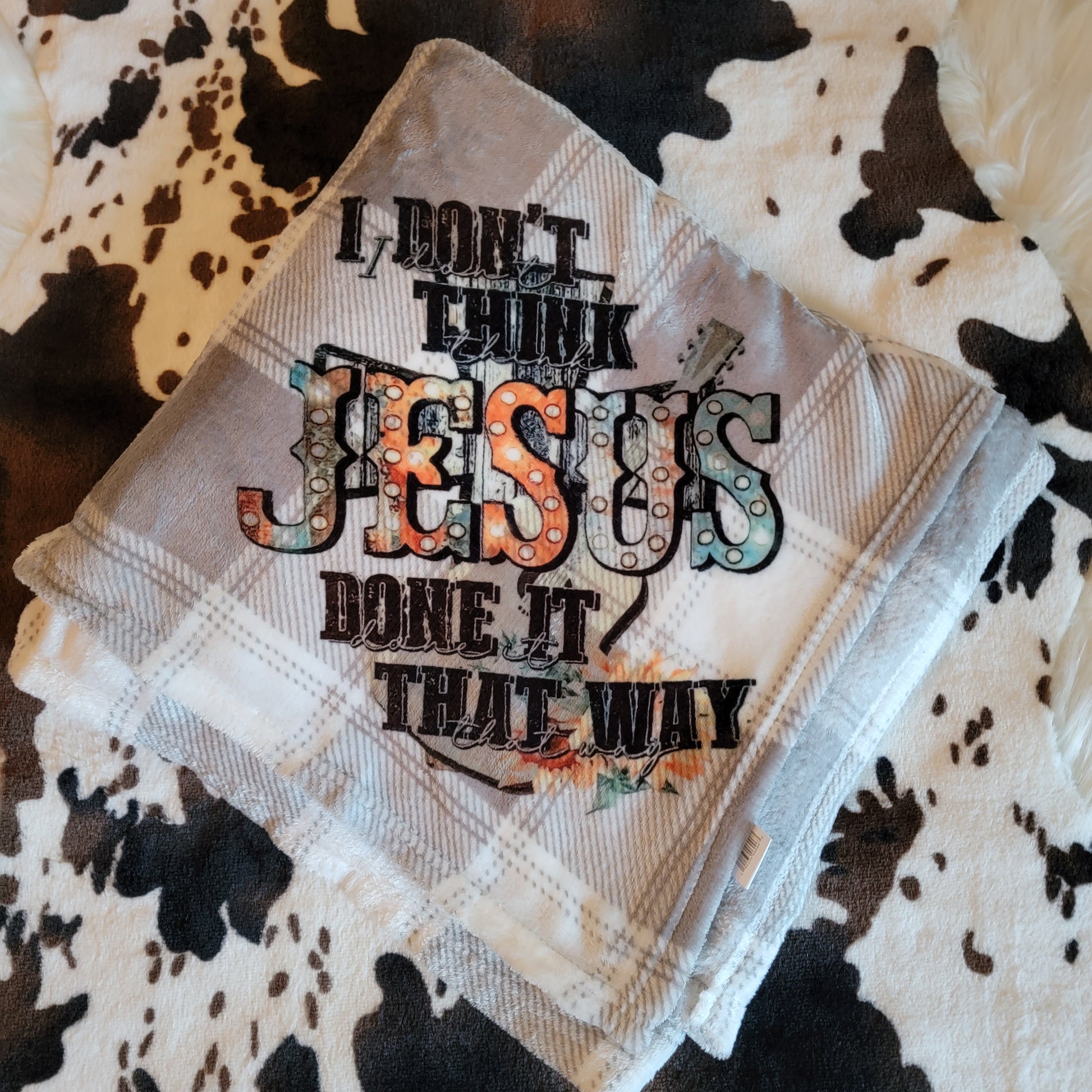 I Dont Think Jesus Done It That Way Gray Plaid Throw Blanket