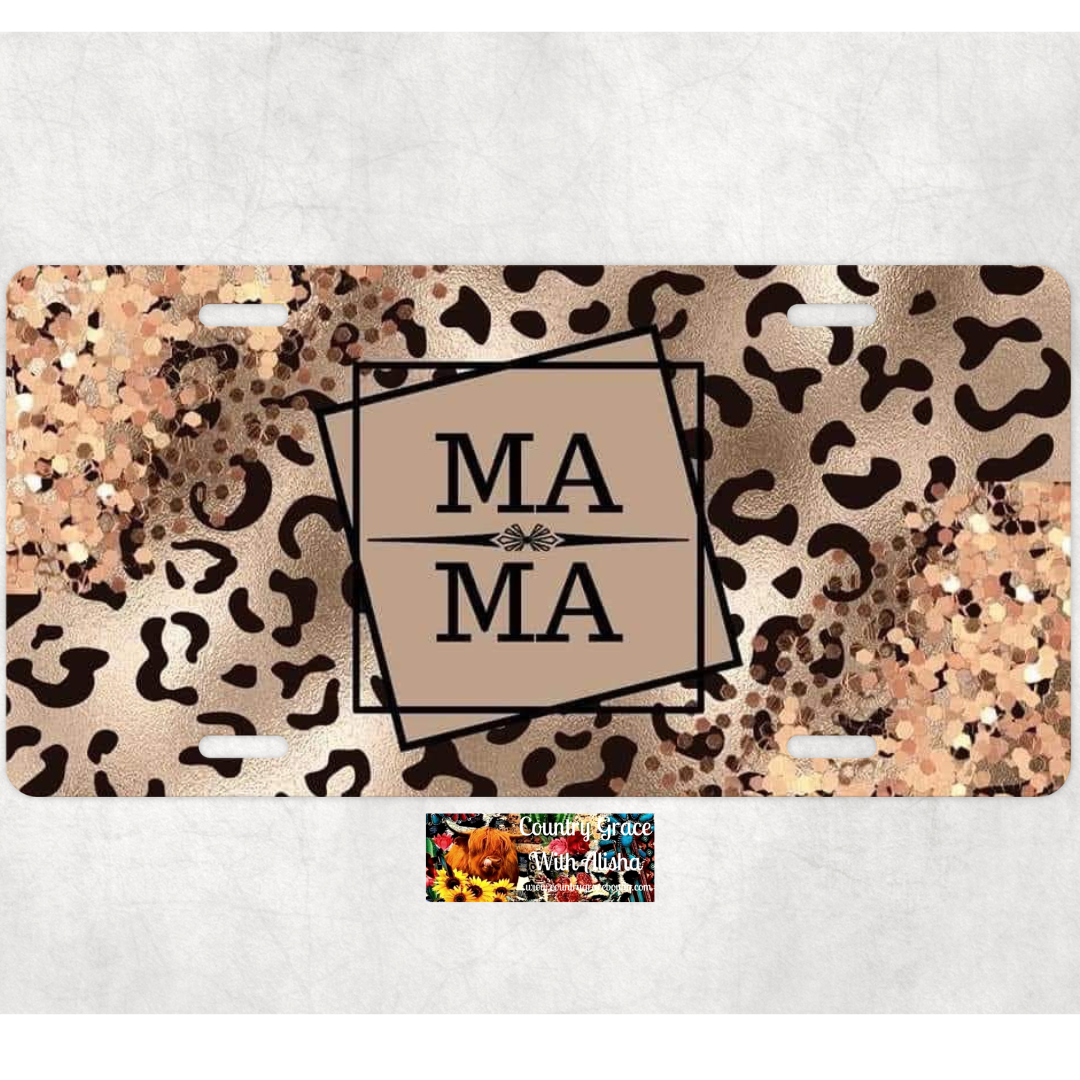 Mama Animal Print Custom Handmade Car Tag License Plate