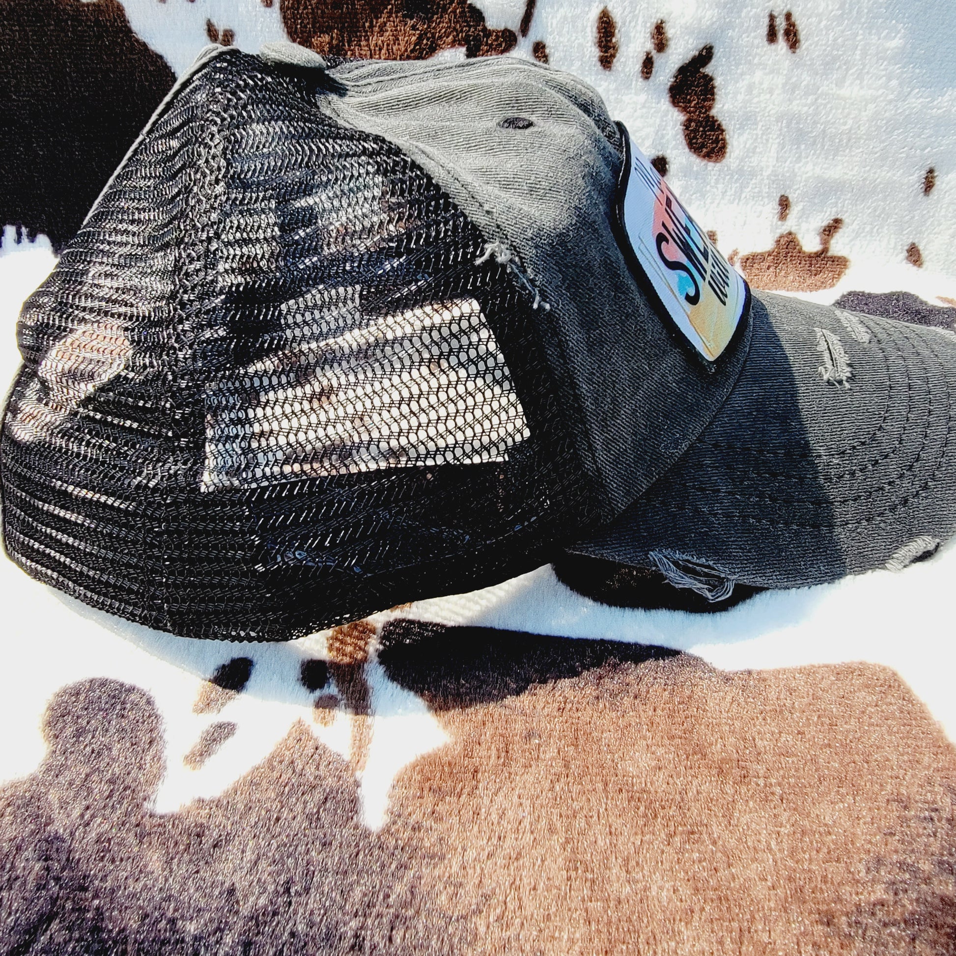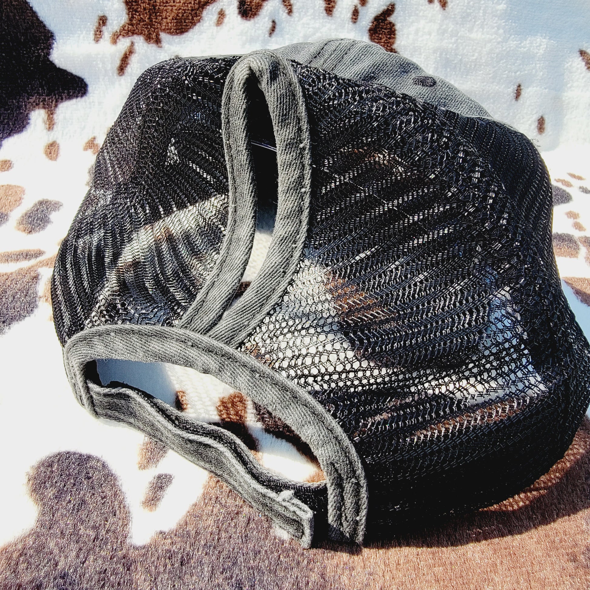 Maybe Swearing Will Help Distressed Patch Ponytail Hat