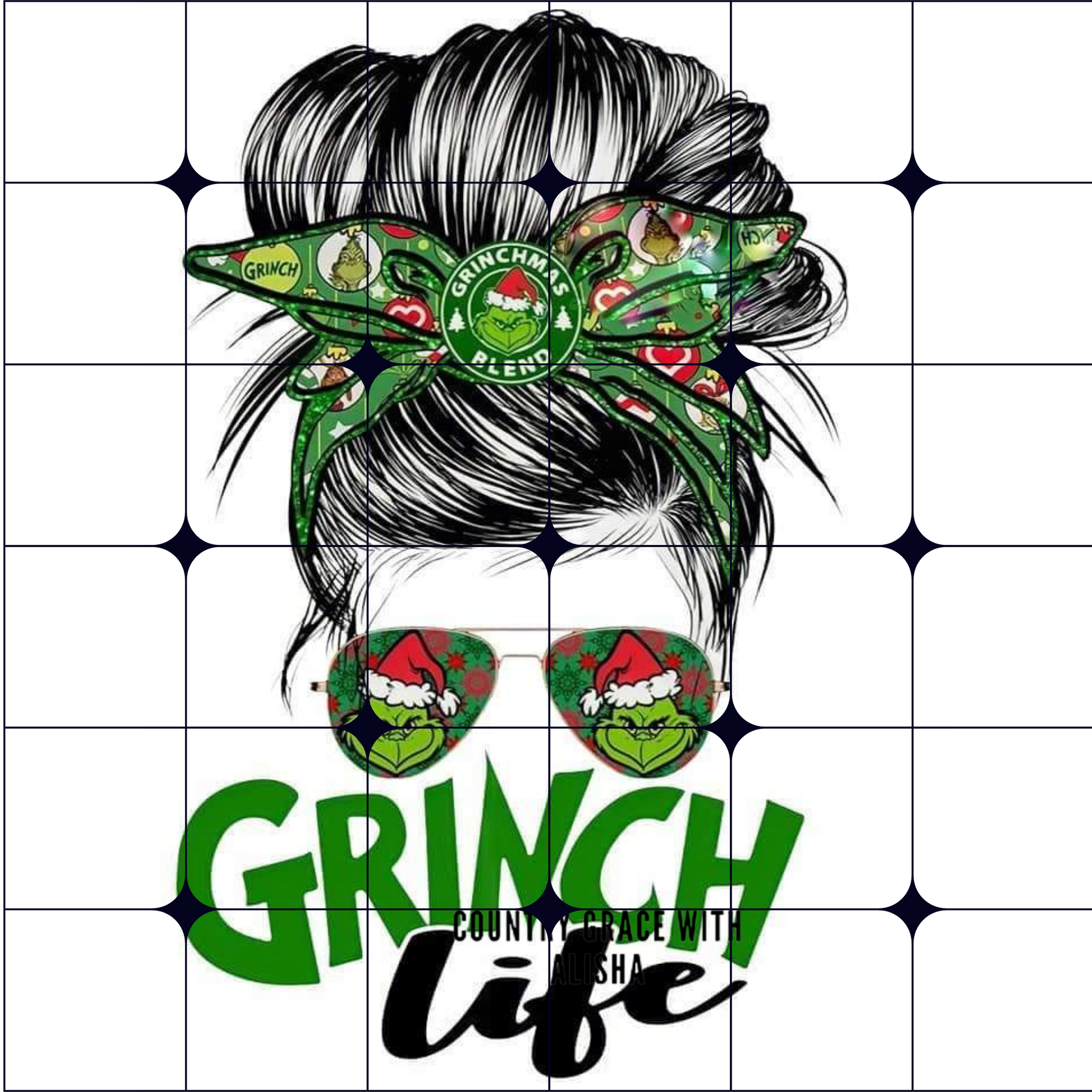 Messy Bun Grinch Ready to Press Sublimation Transfer