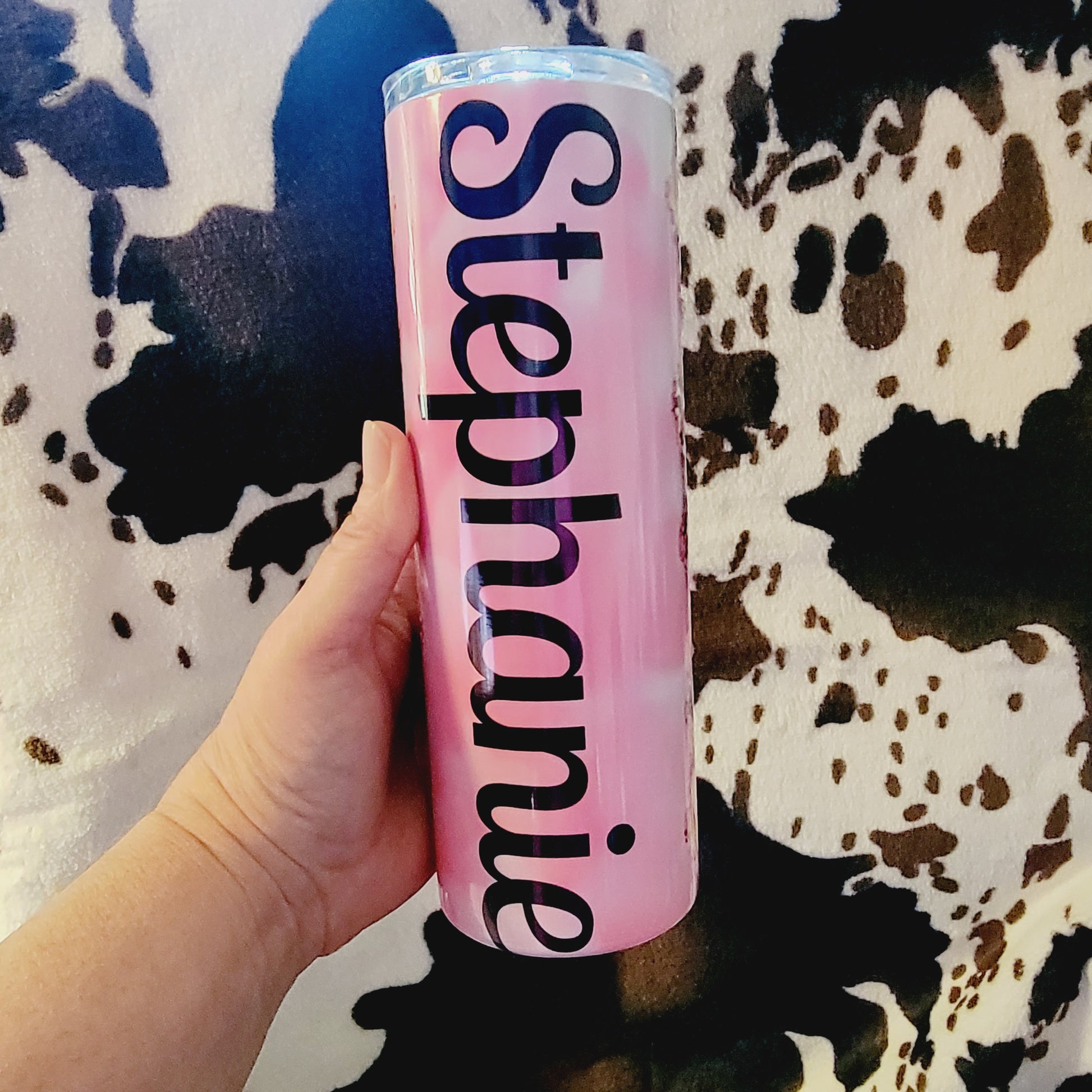 This custom-designed 20oz Skinny Tumbler is a double-walled stainless steel tumbler, so it is perfect for hot or cold drinks! The tumbler includes a tight lid and a reusable straw. Skinny Tumblers are BPA-free.