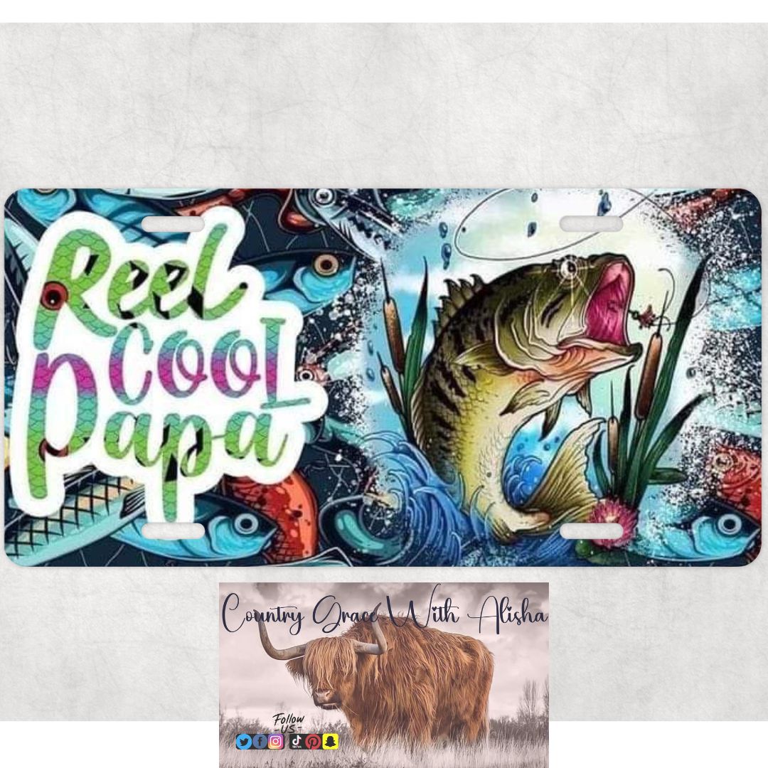Reel Cool Papa Fish Custom Car Tag License Plate