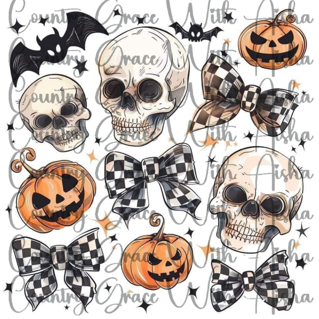 Skulls and Bows Halloween Ready to Press Sublimation Transfer