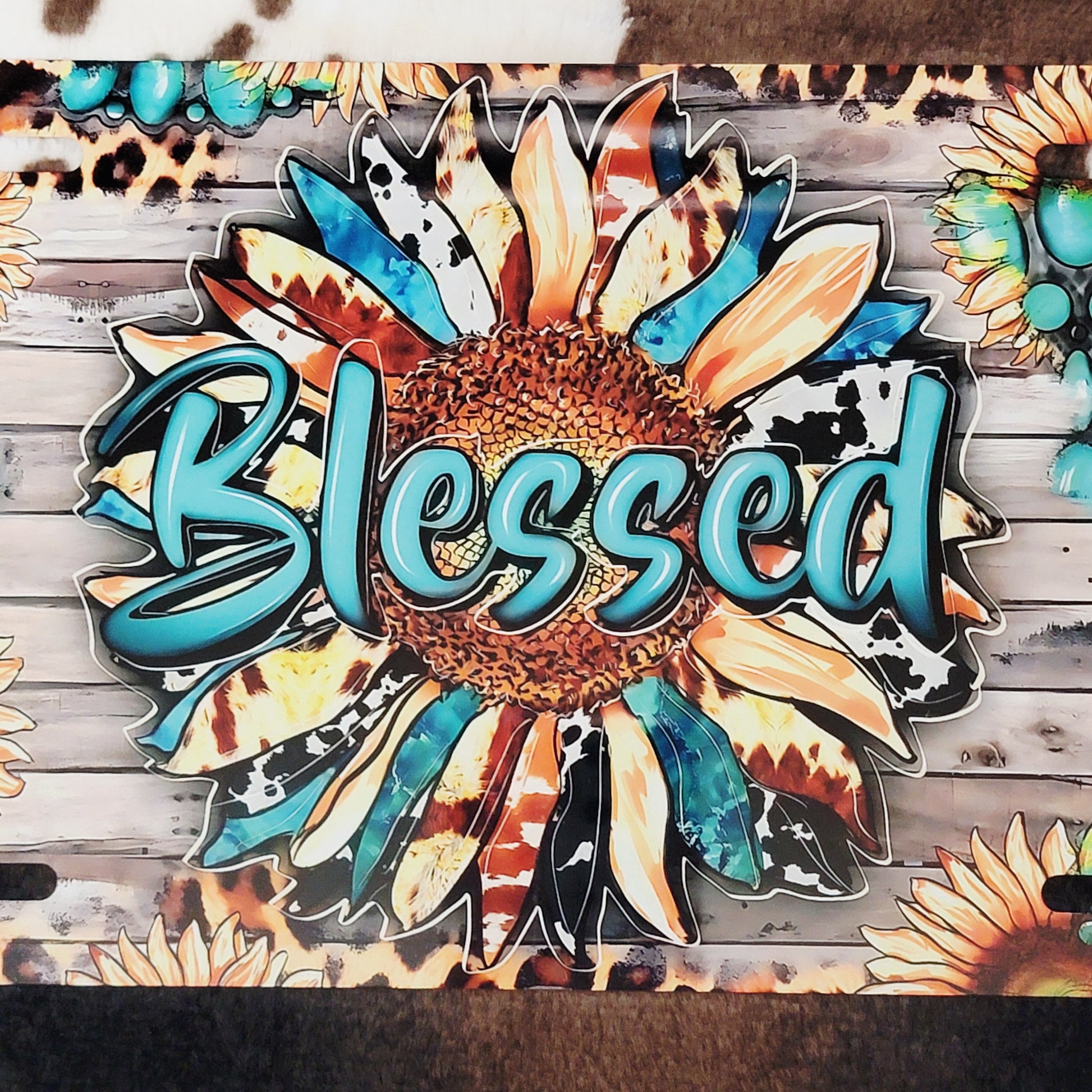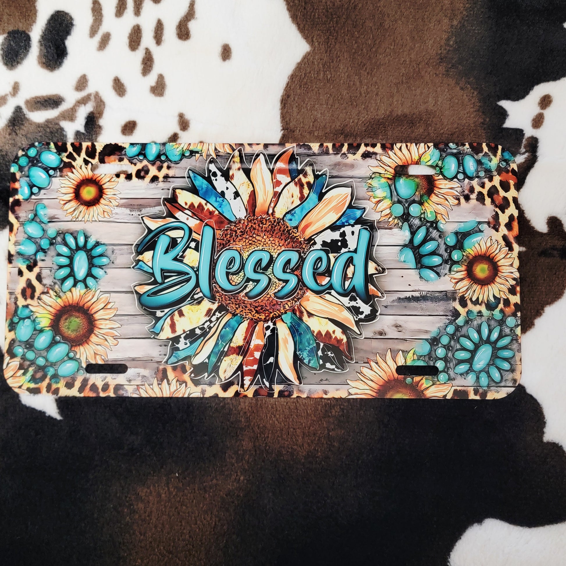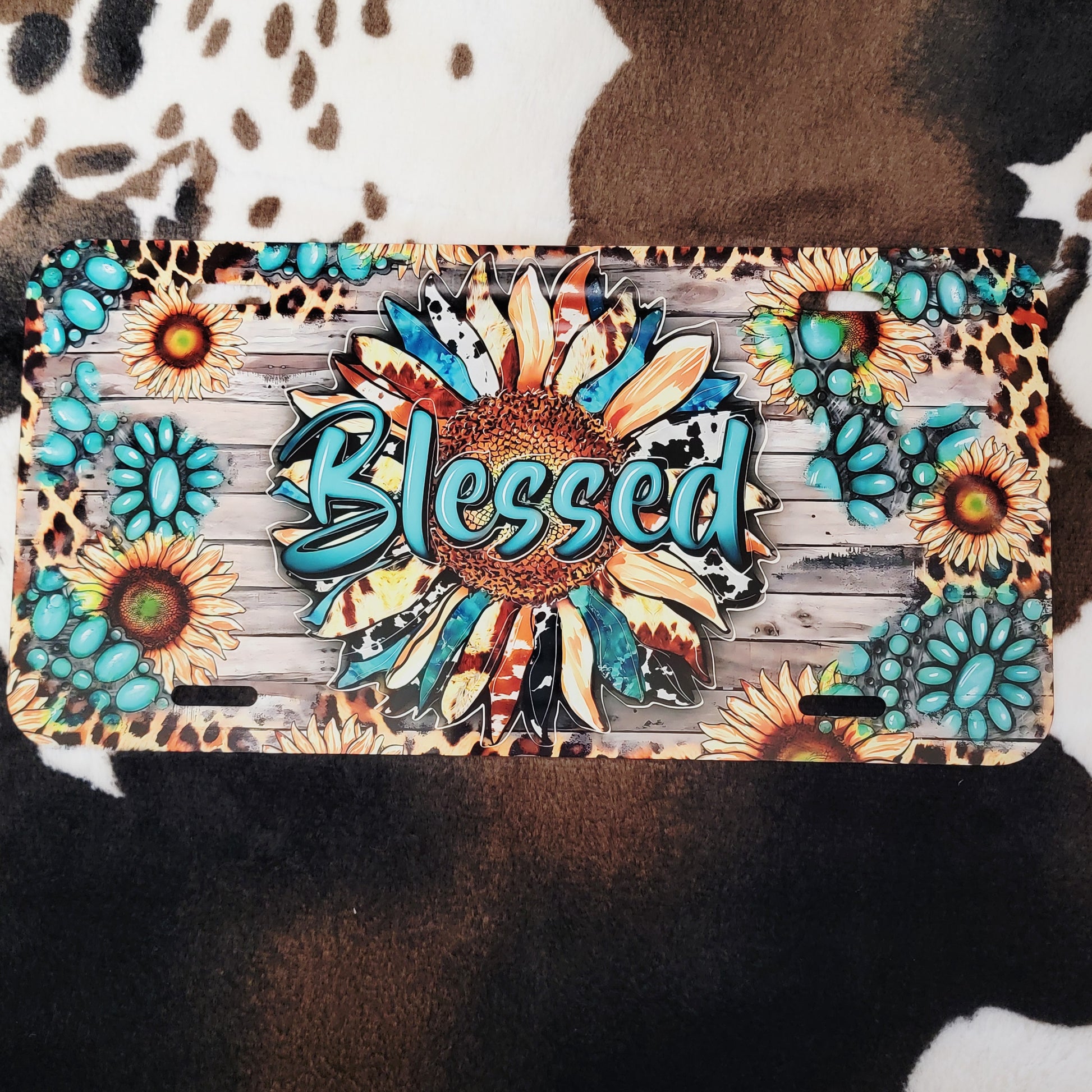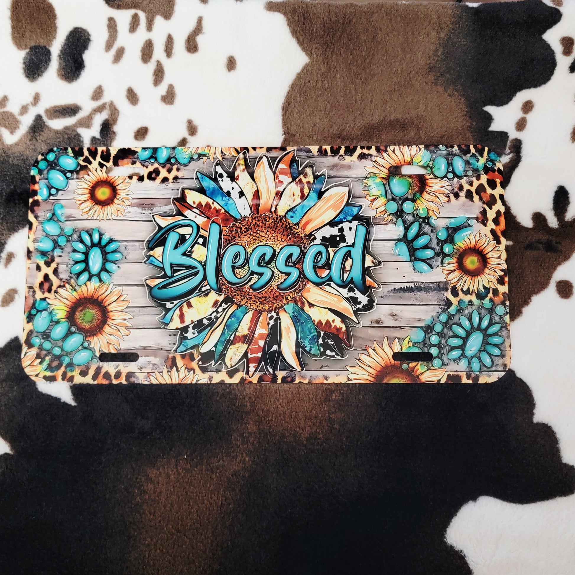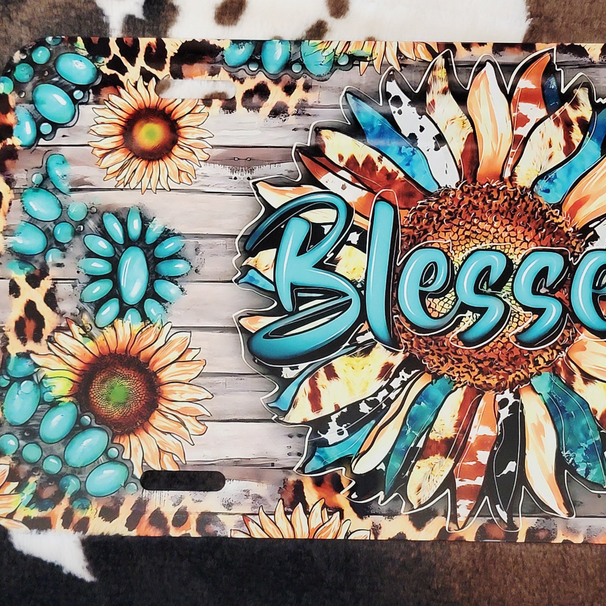 Sunflower Blessed Custom Handmade Car Tag License Plate