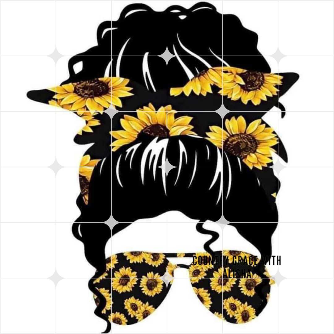 Sunflower Messy Bun Ready to Press Sublimation Transfer