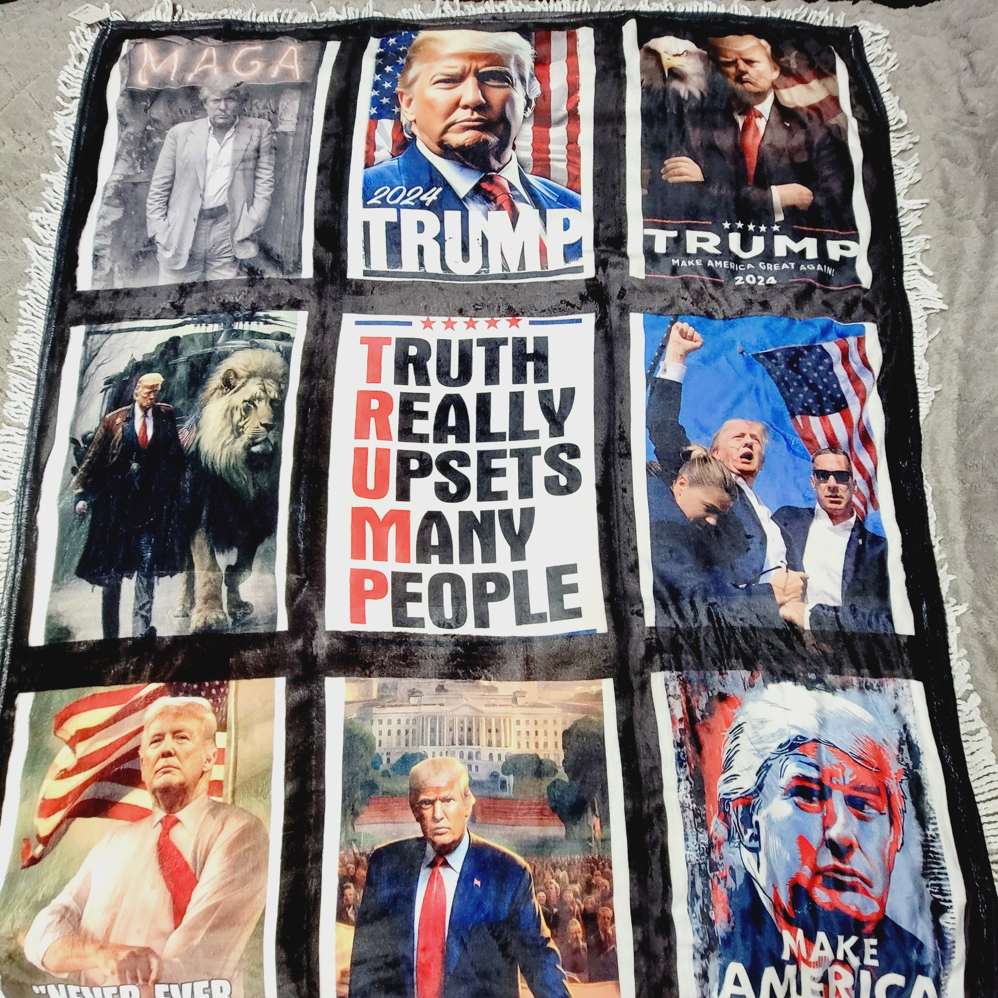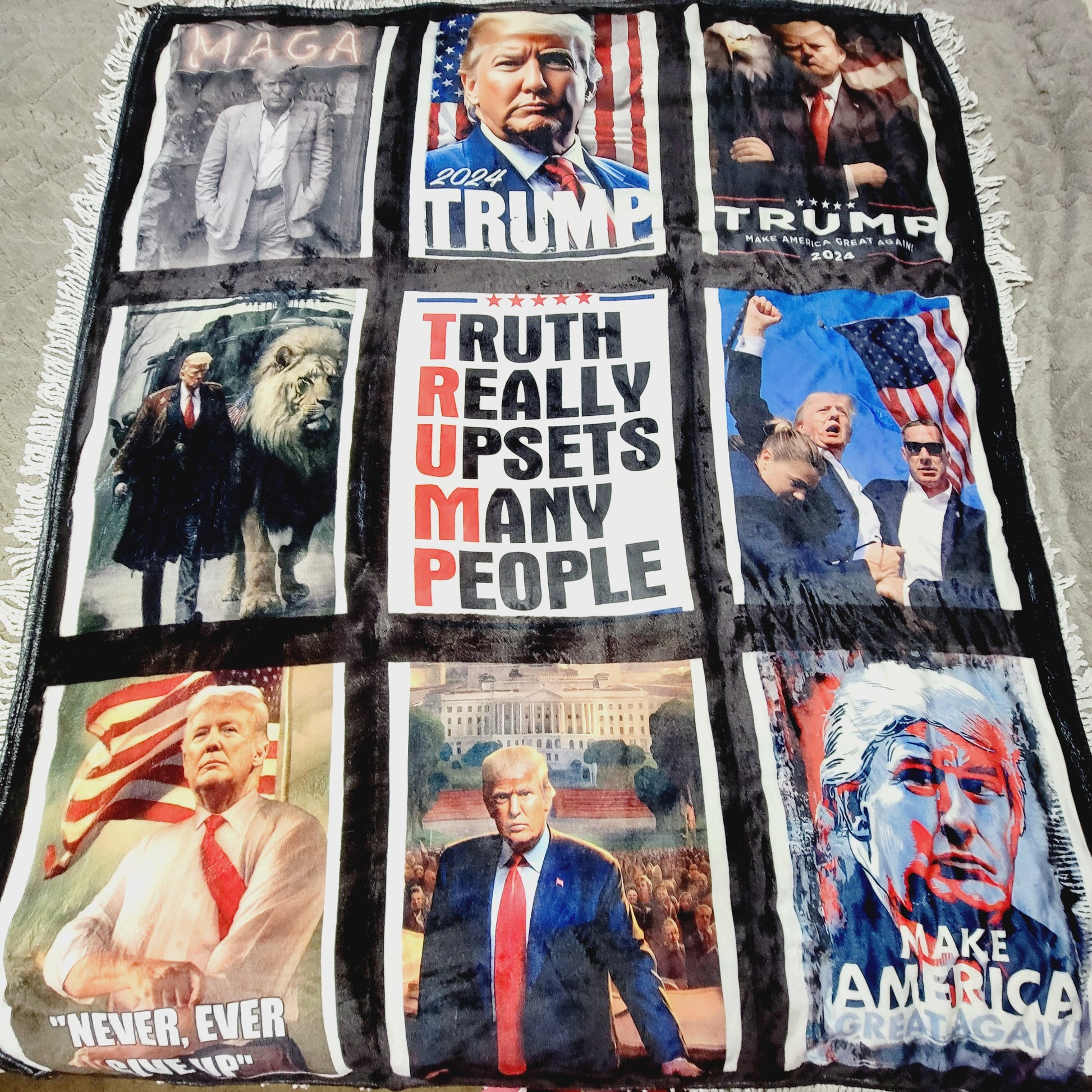 Trump President Fleece Blanket 9 Panel Custom Photo Throw Blanket