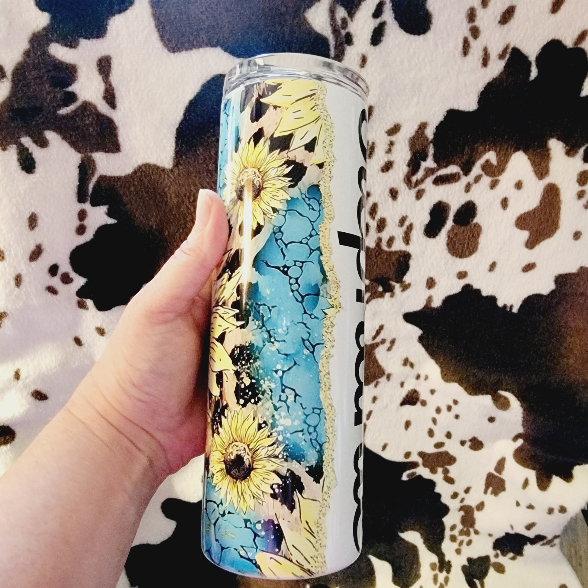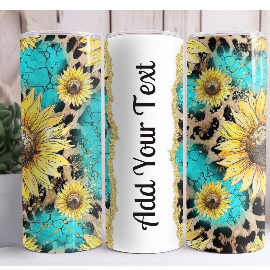 Turquoise Sunflower Personalized Name 20oz Skinny Tumbler