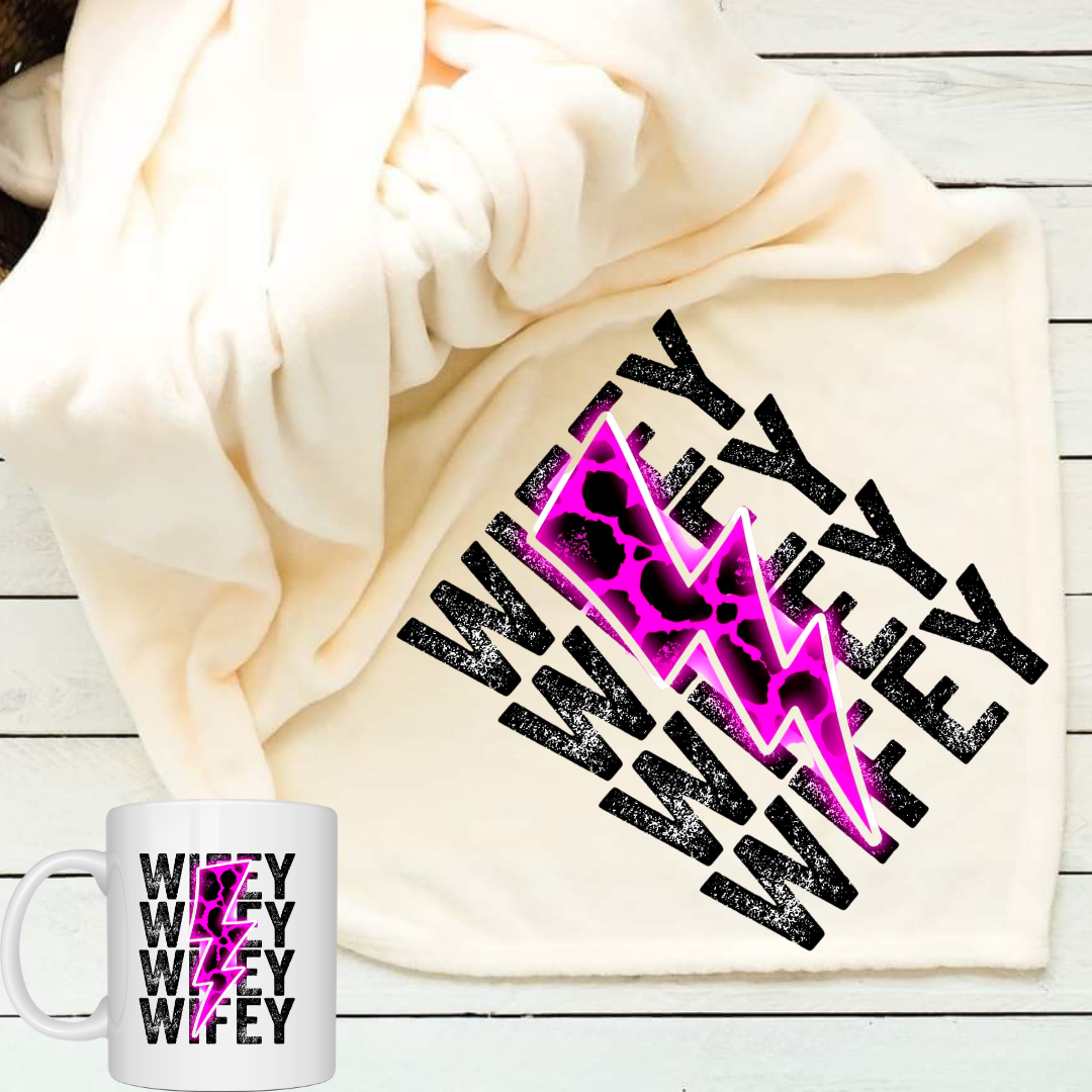 Wifey Lighting Bolt Throw Blanket and Mug