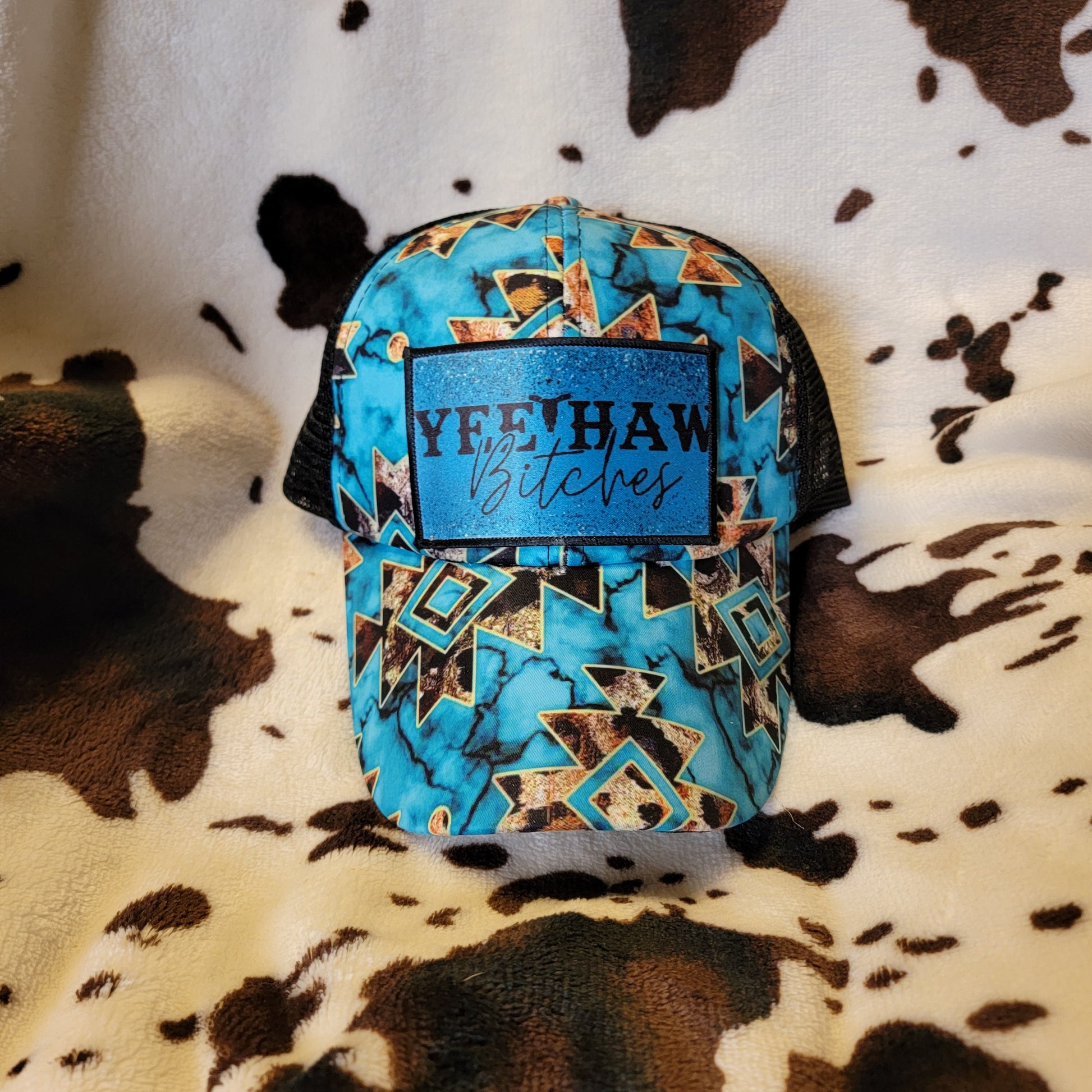 Yee Haw Western Custom Criss Cross Ponytail Patch Hat