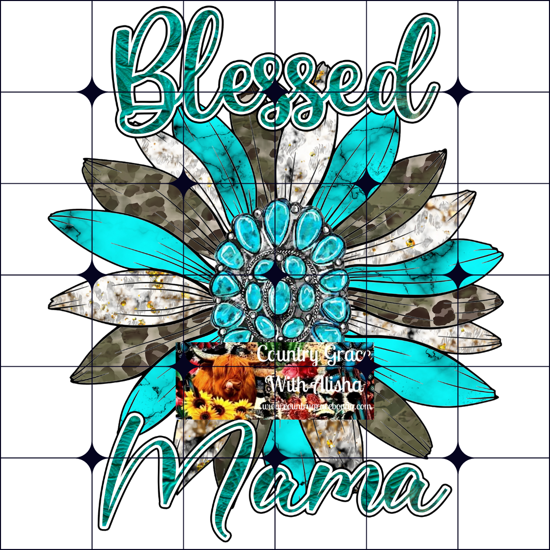 Blessed Mama Turquoise Ready to Press Sublimation Transfer