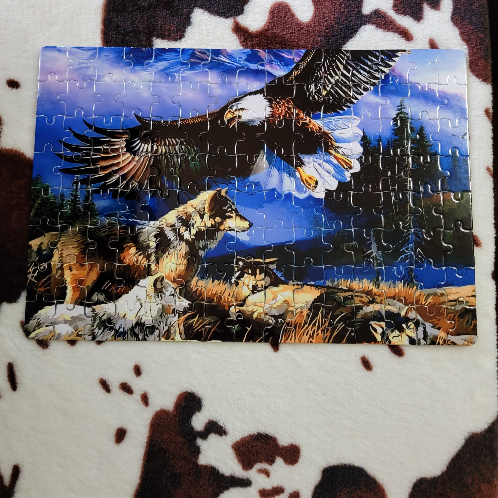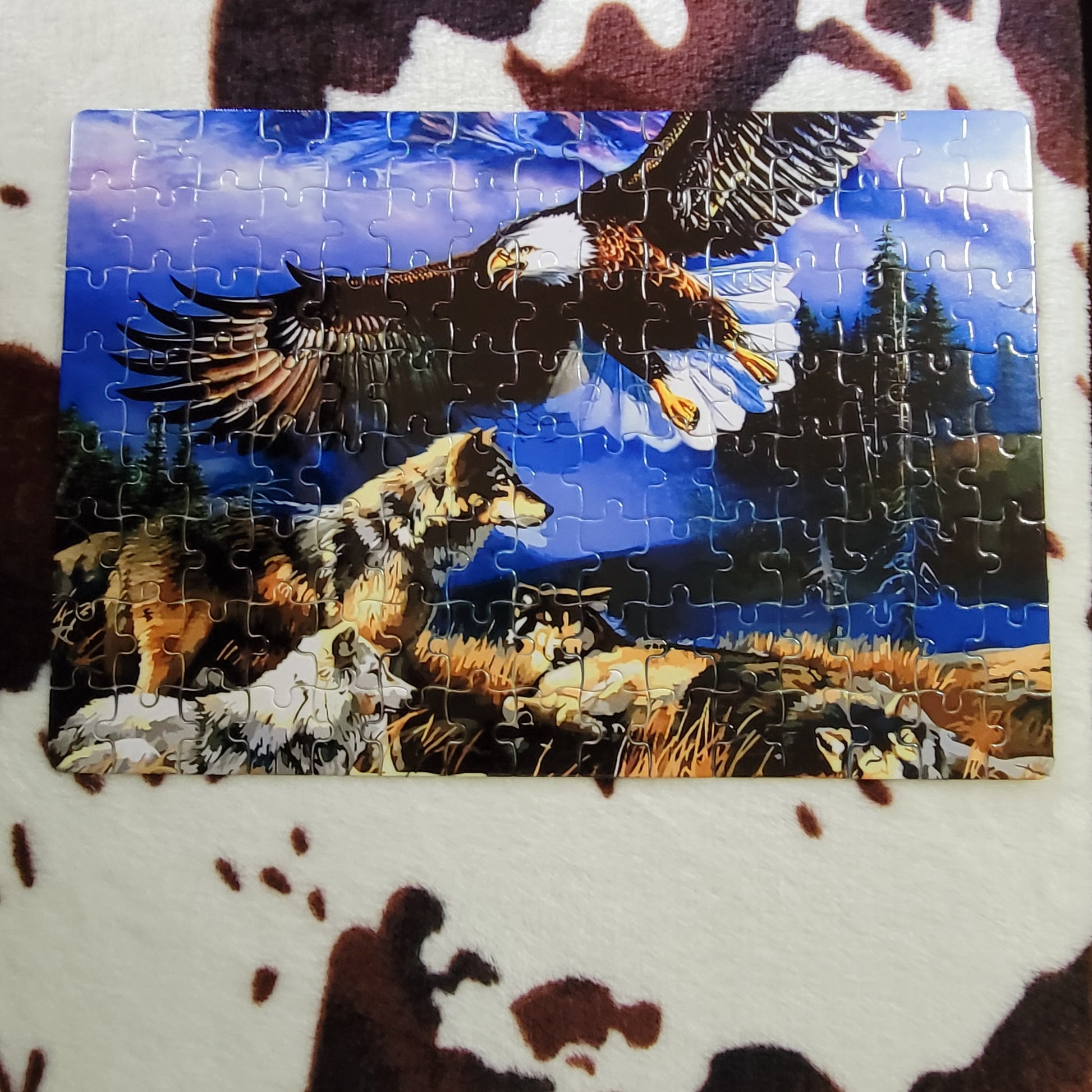 Eagle Wolf Mountain 120 Piece Handmade Jigsaw Puzzle