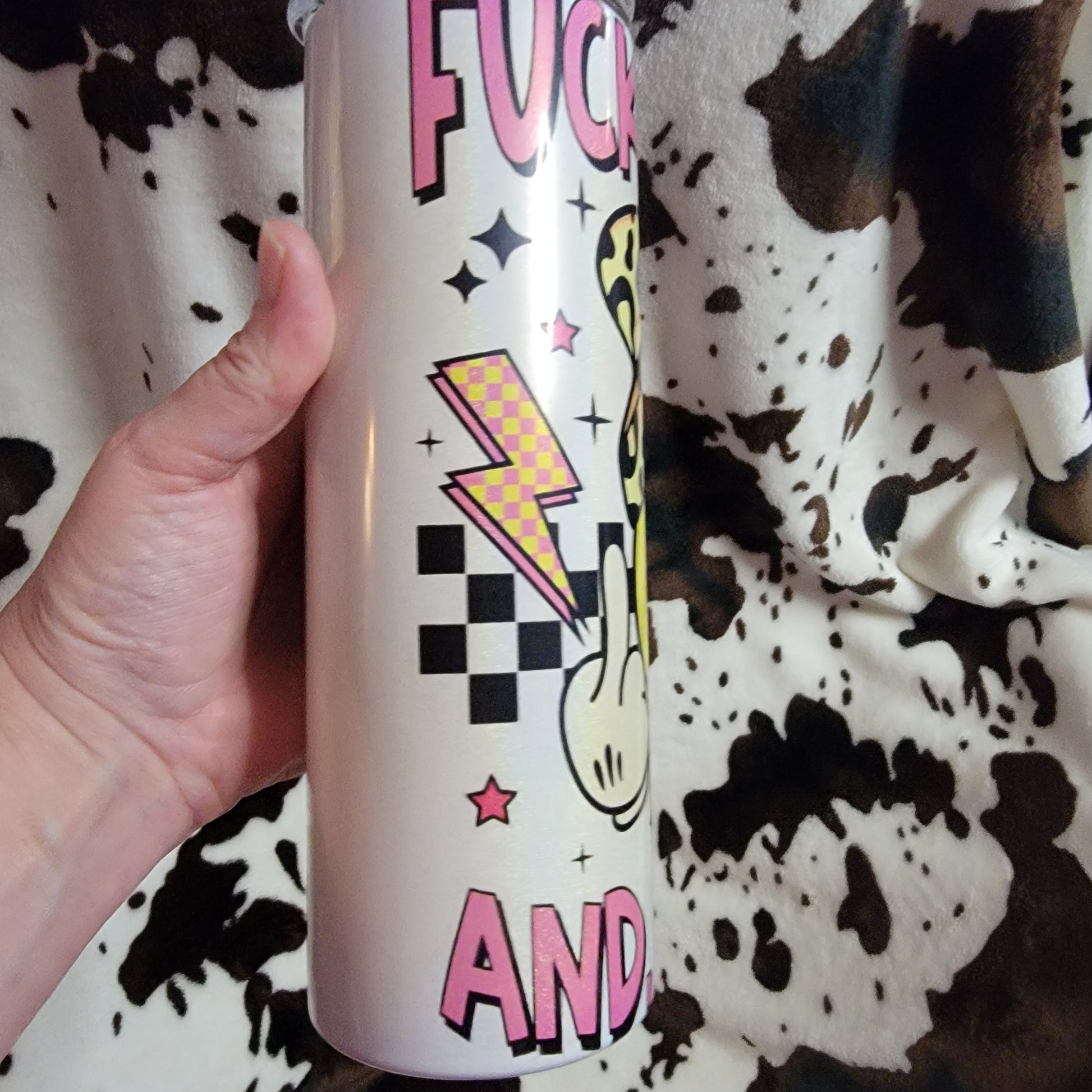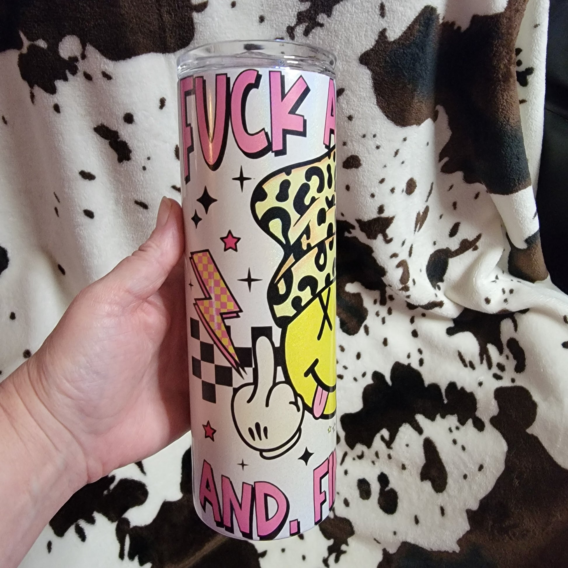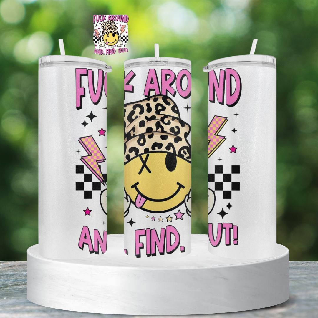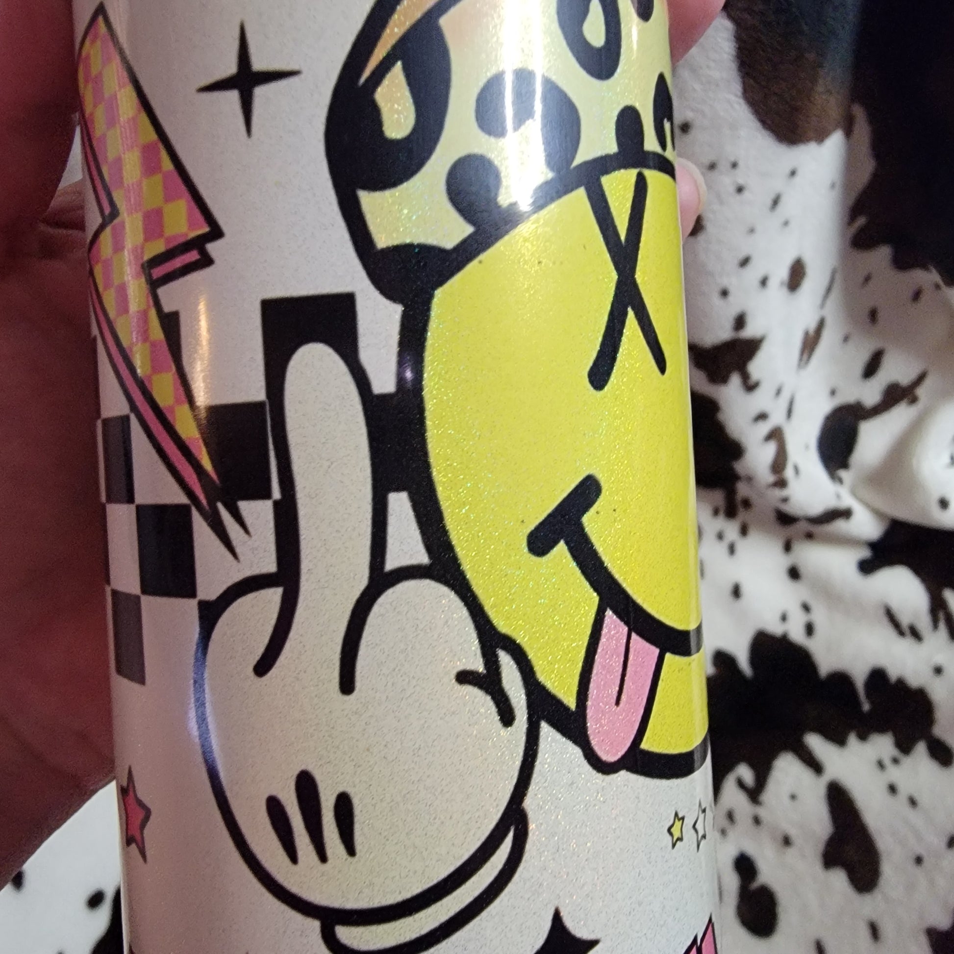FAAFO Smiley Face Irridecent Shimmer 20oz Skinny Tumbler
