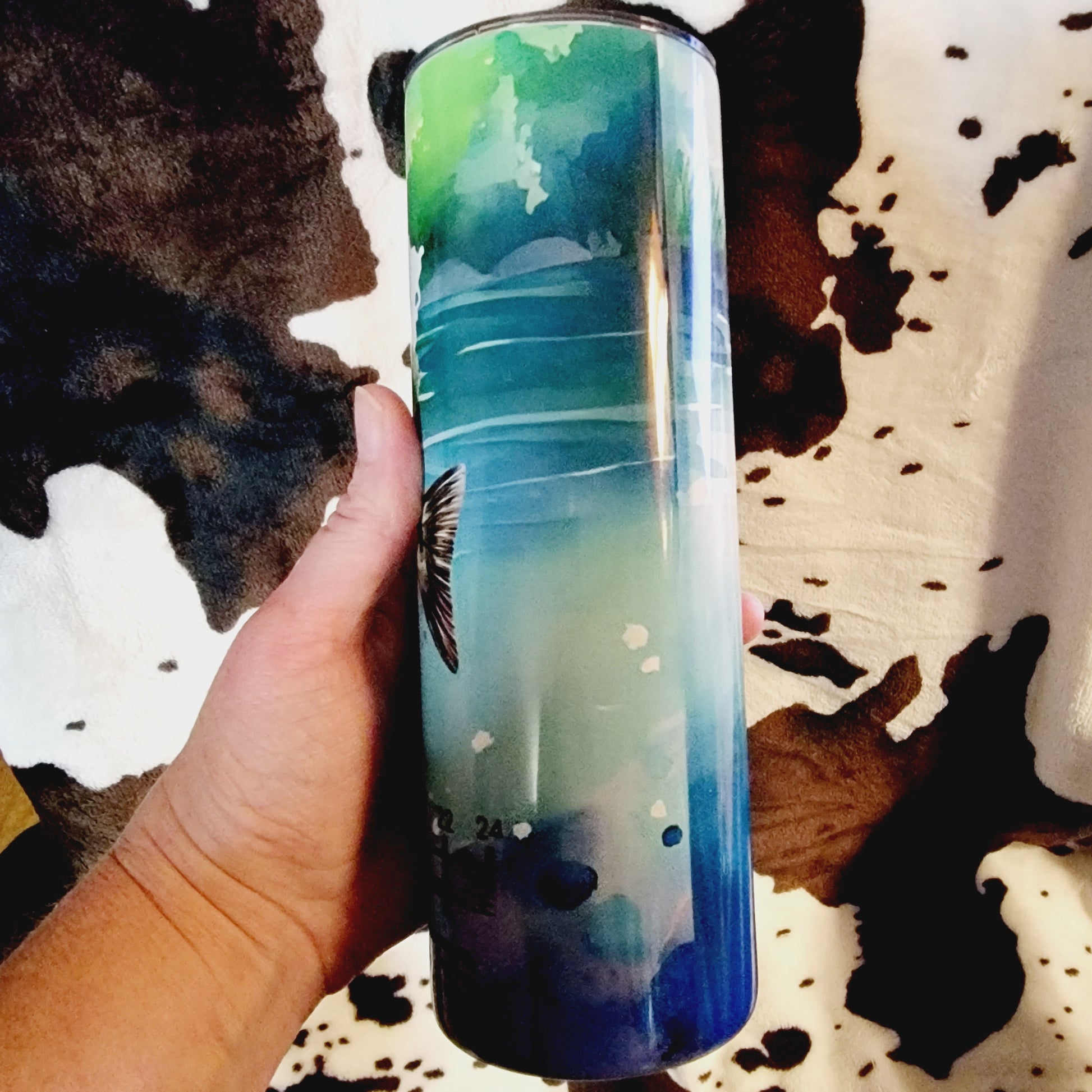 Be the envy of your friends with this beautifully handcrafted, custom 20oz skinny tumbler. It's made with stainless steel and boasts a stunning, eye-catching print. Perfect for both hot and cold beverages and insulated to keep your drinks at the perfect temperature. Comes with a lid, straw, and all the charm of handmade perfection!
