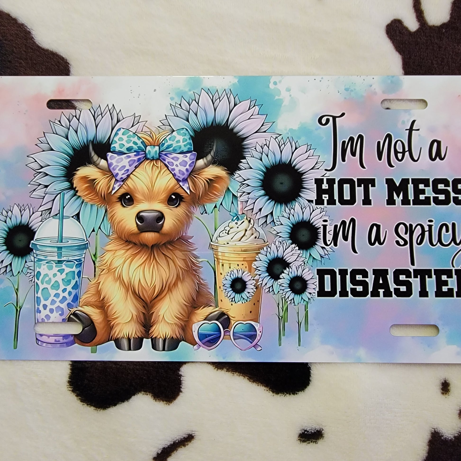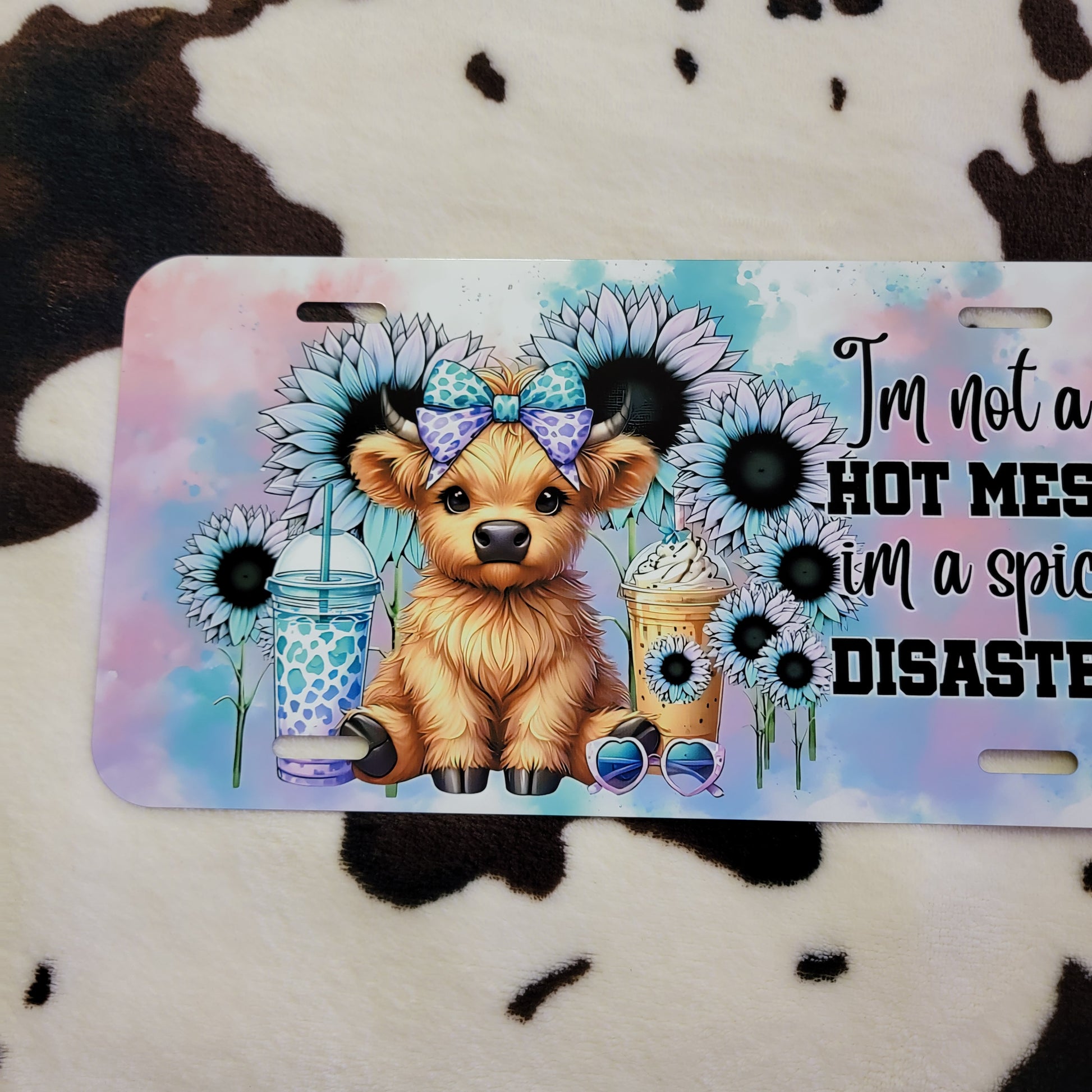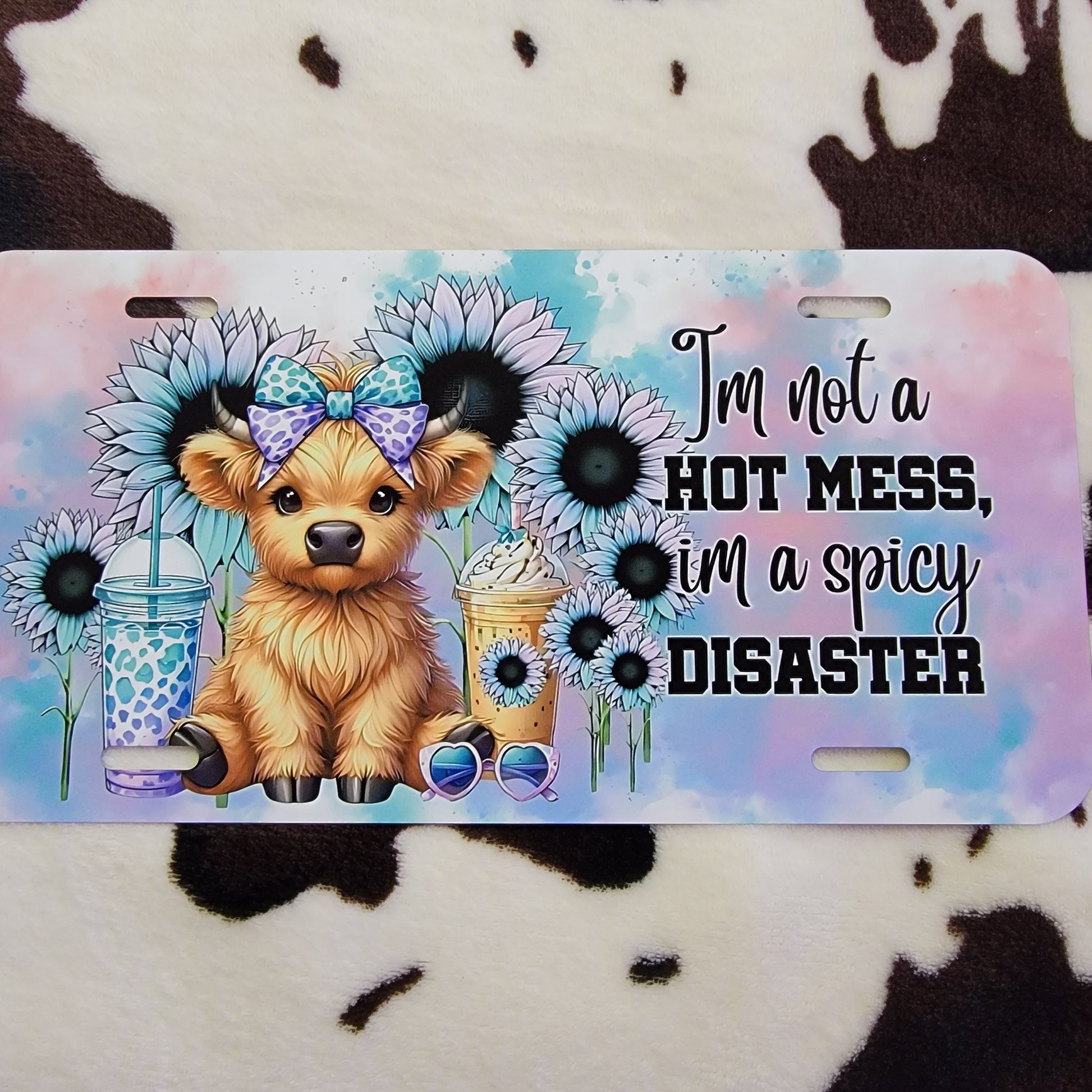 Highland Cow Hot Mess Floral Car Tag License Plate