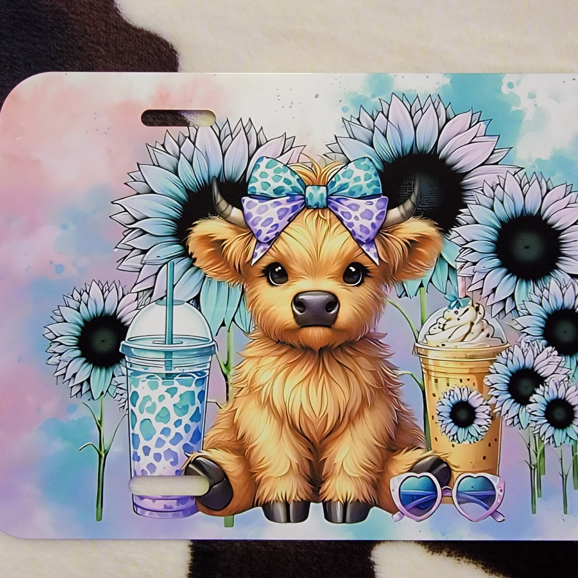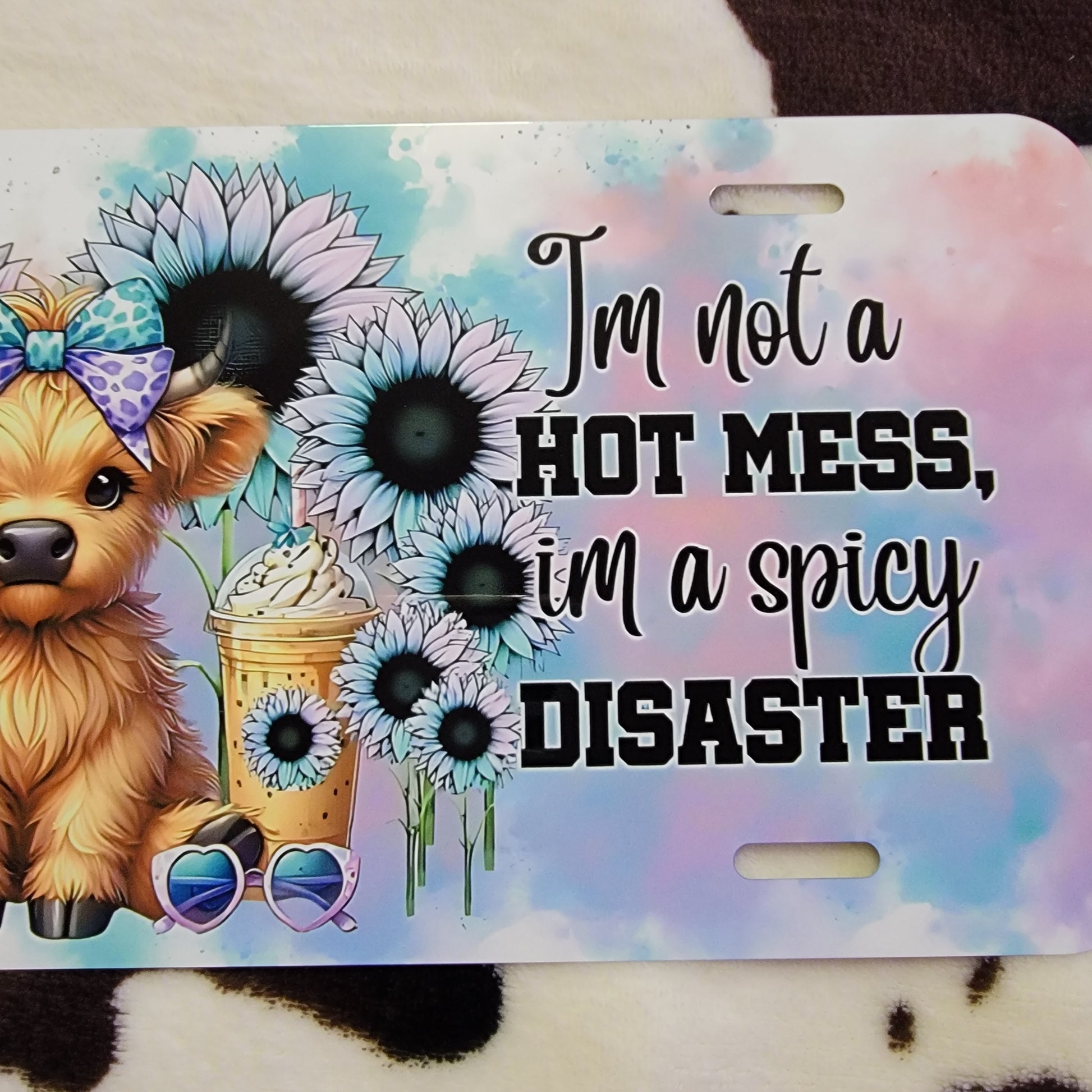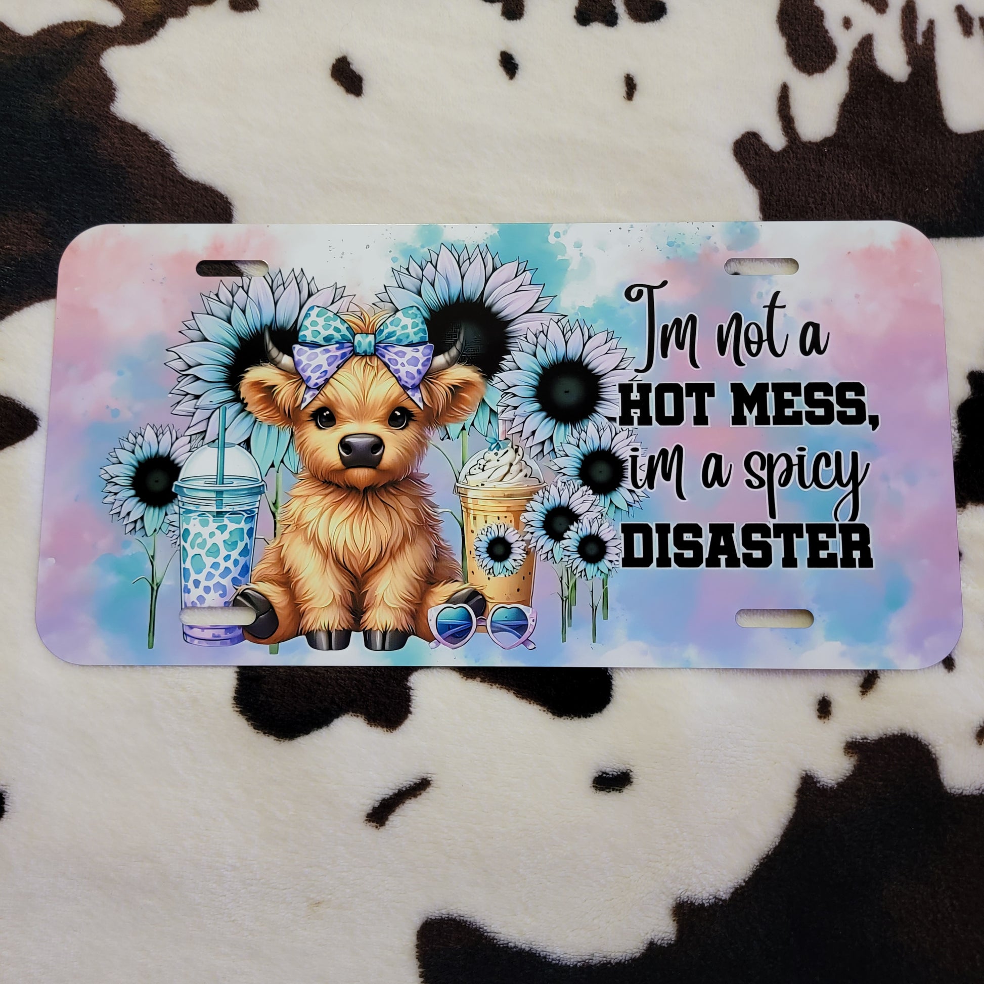 Highland Cow Hot Mess Floral Car Tag License Plate
