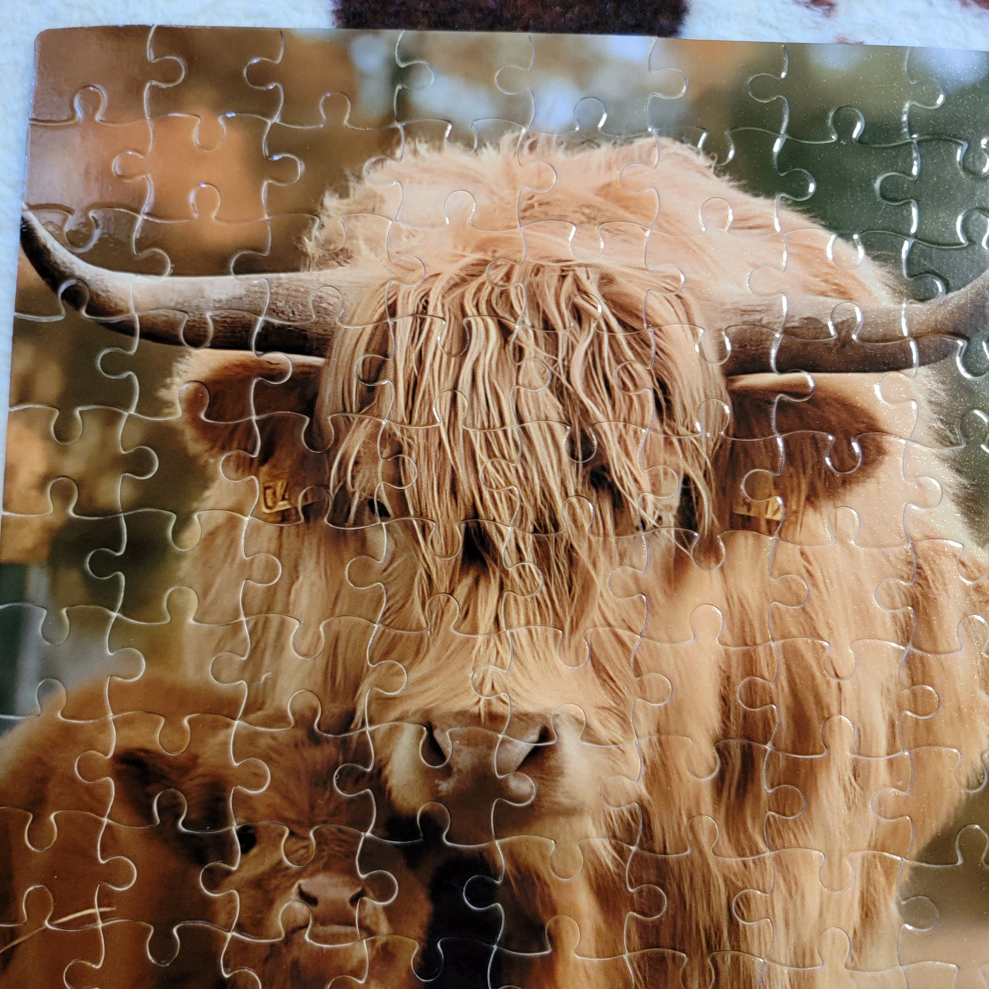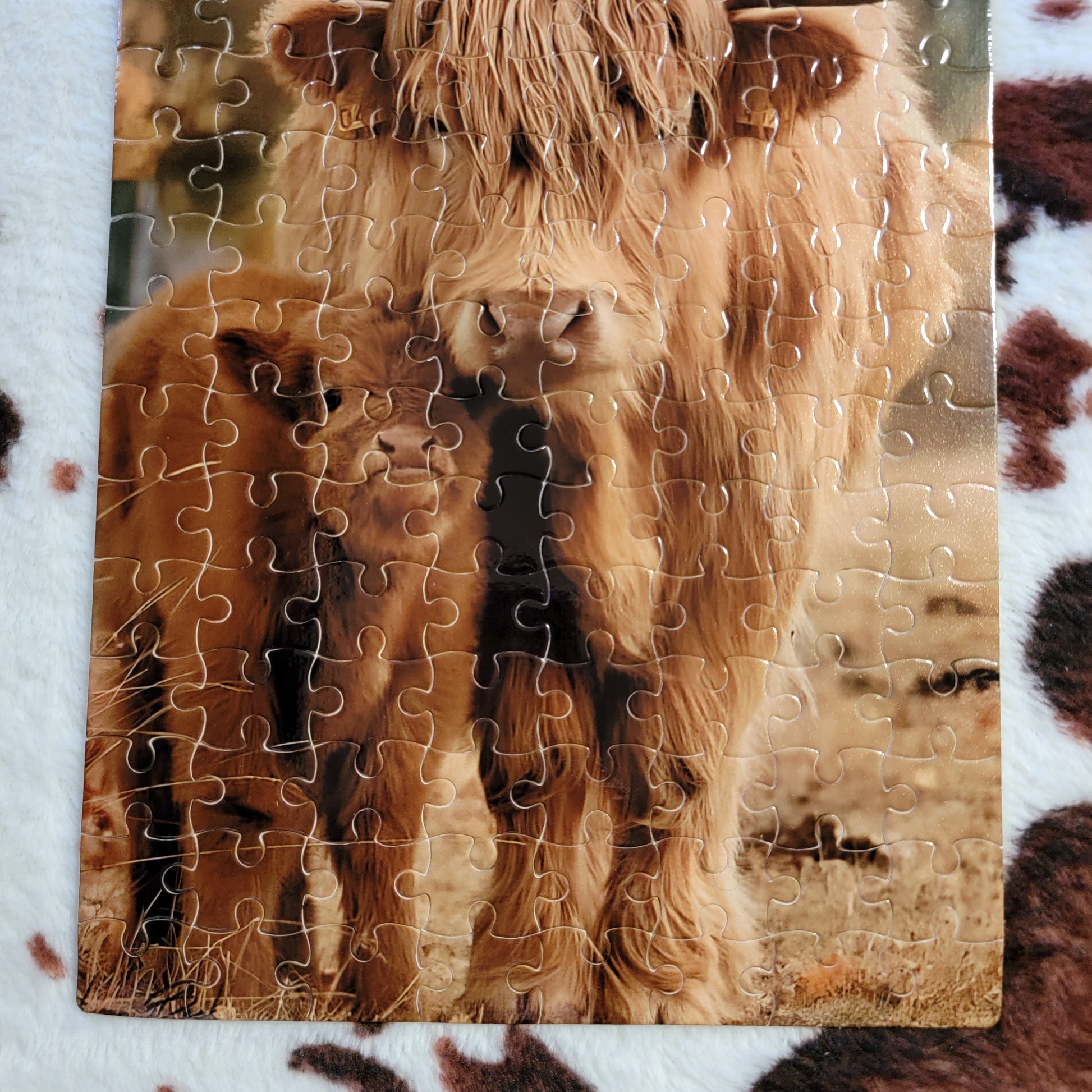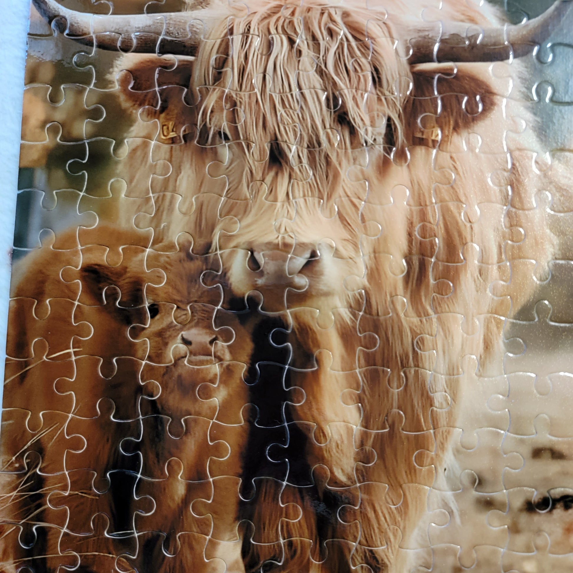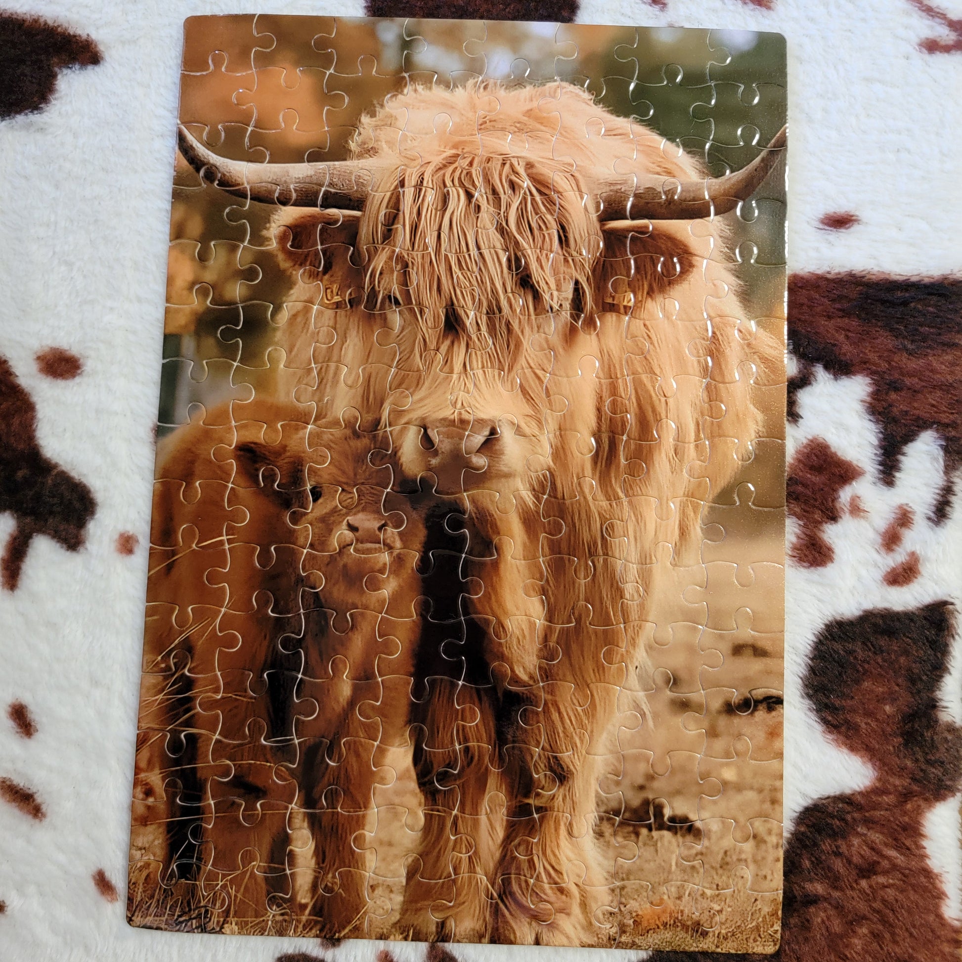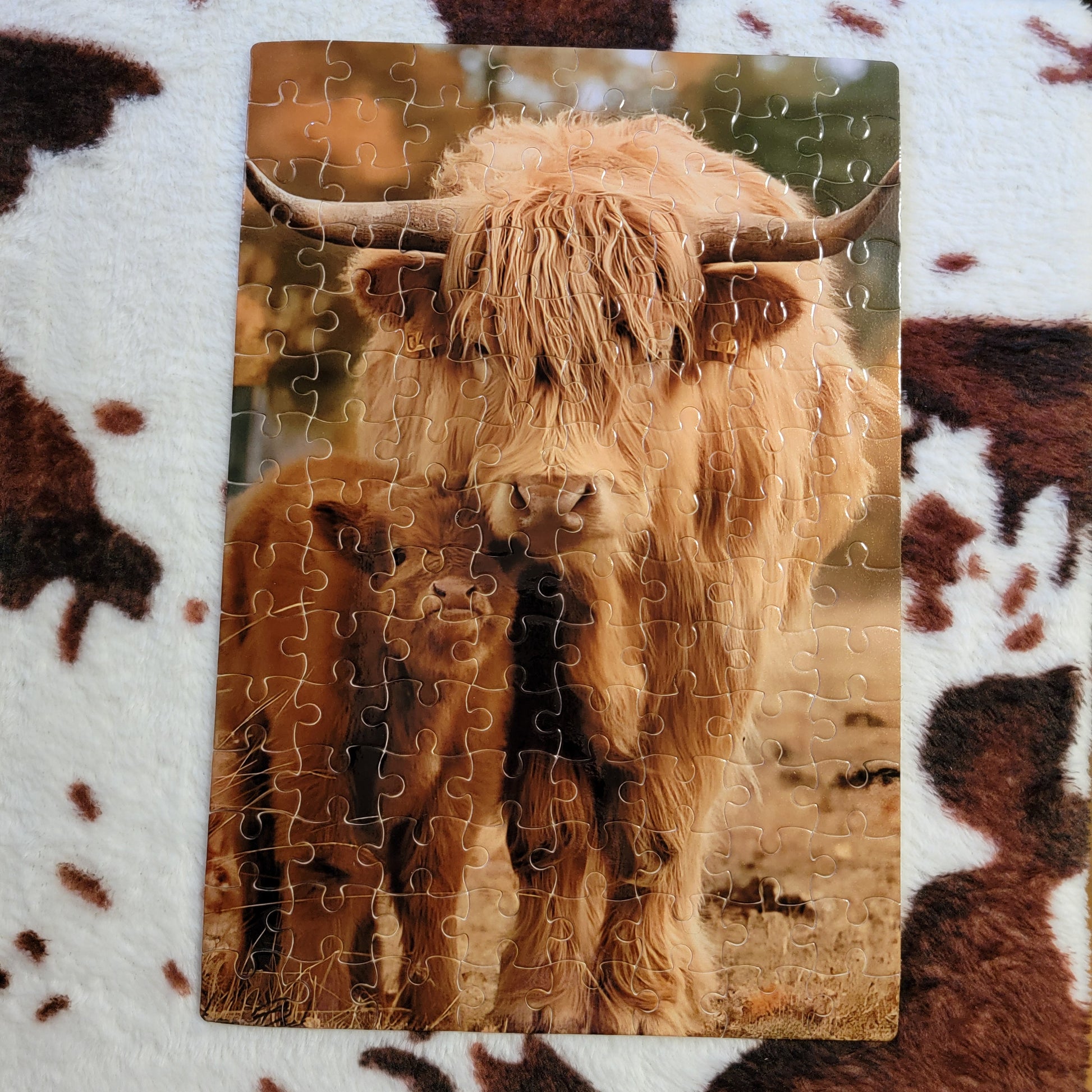 Highland Cow Mama and Baby 120 PC Handmade Jigsaw Puzzle