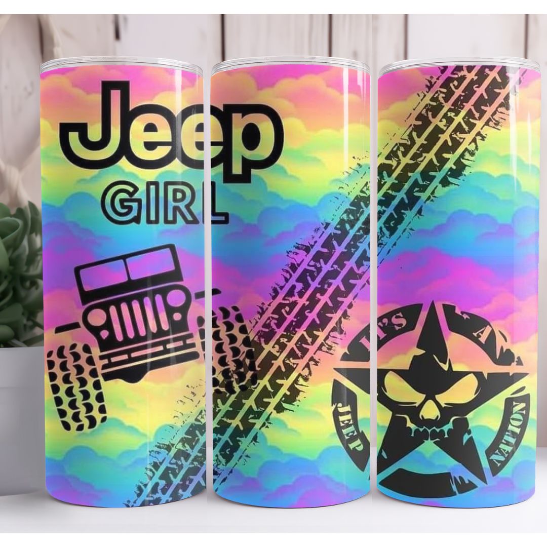 Jeep Girl Neon Custom 20oz Skinny Tumbler
