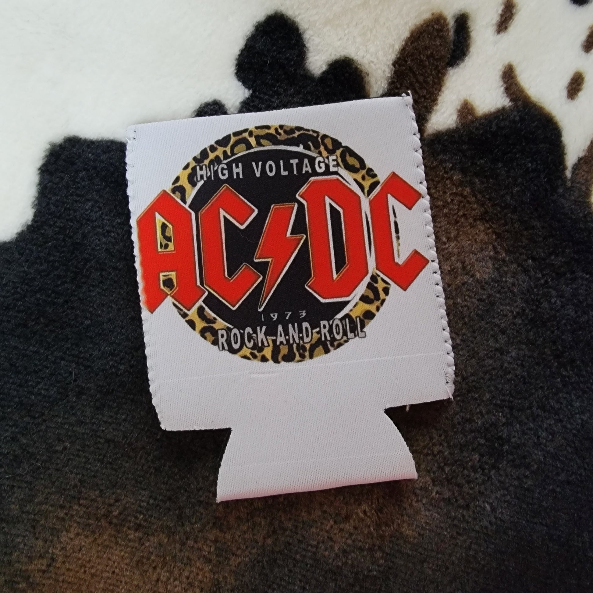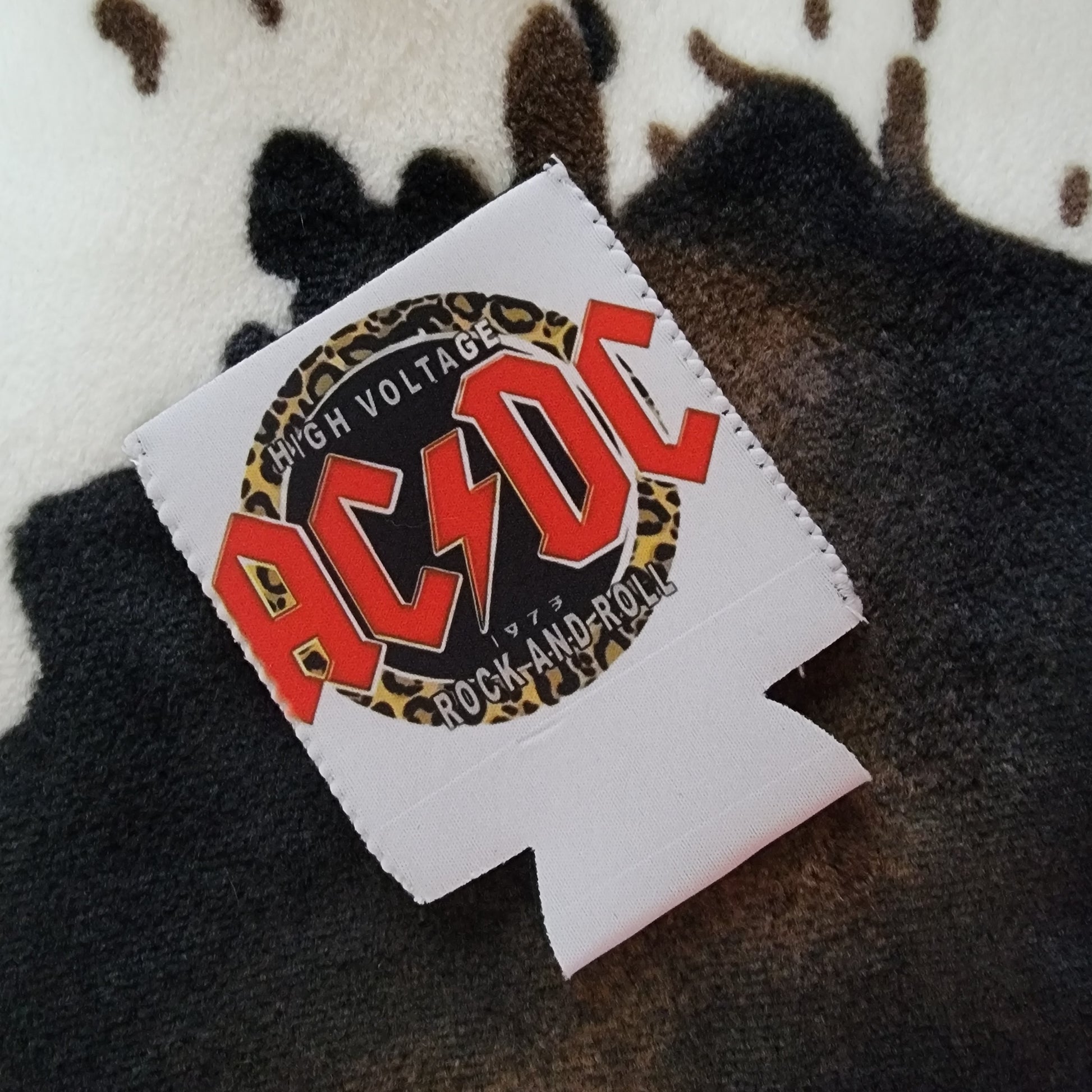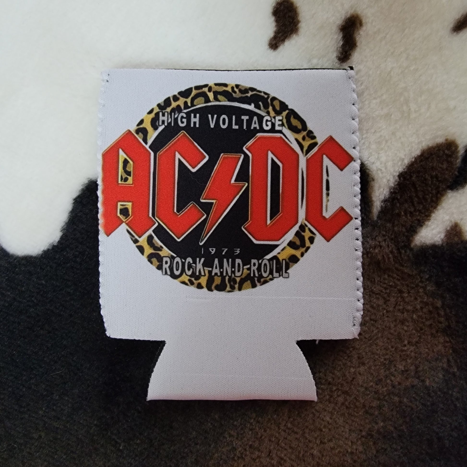 Leopard AC DC Can Cooler Drink Koozie
