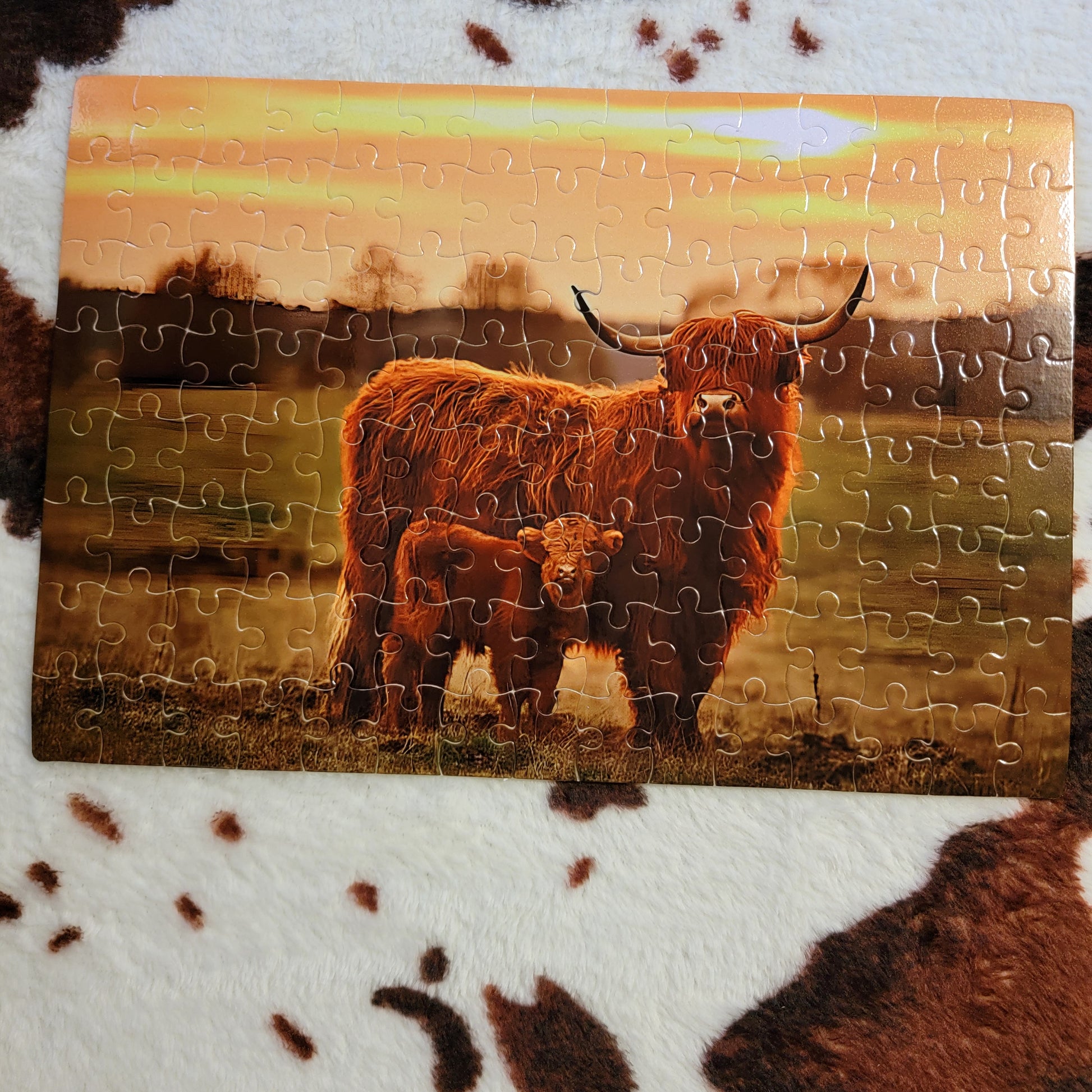 Mama Baby Highland Cow 120 Piece Handmade Jigsaw Puzzle