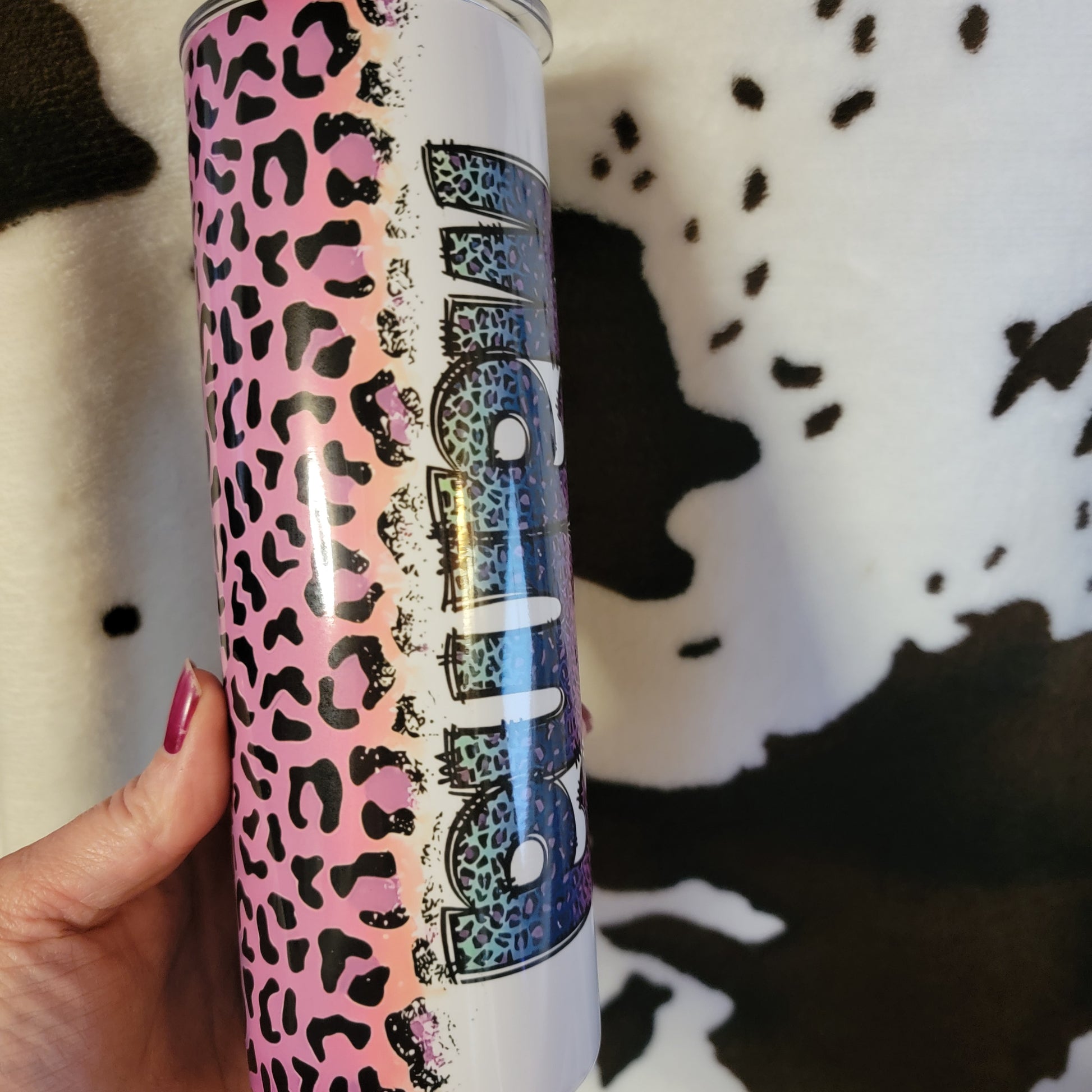 Mama Purple Animal Print Custom 20oz Skinny Tumbler