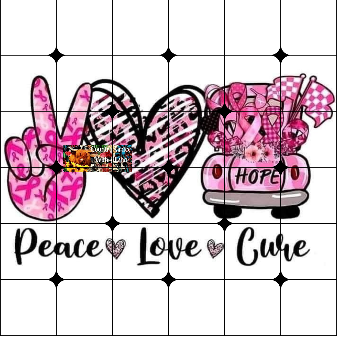 Peace Love Cure Breast Cancer Ready to Press Sublimation Transfer