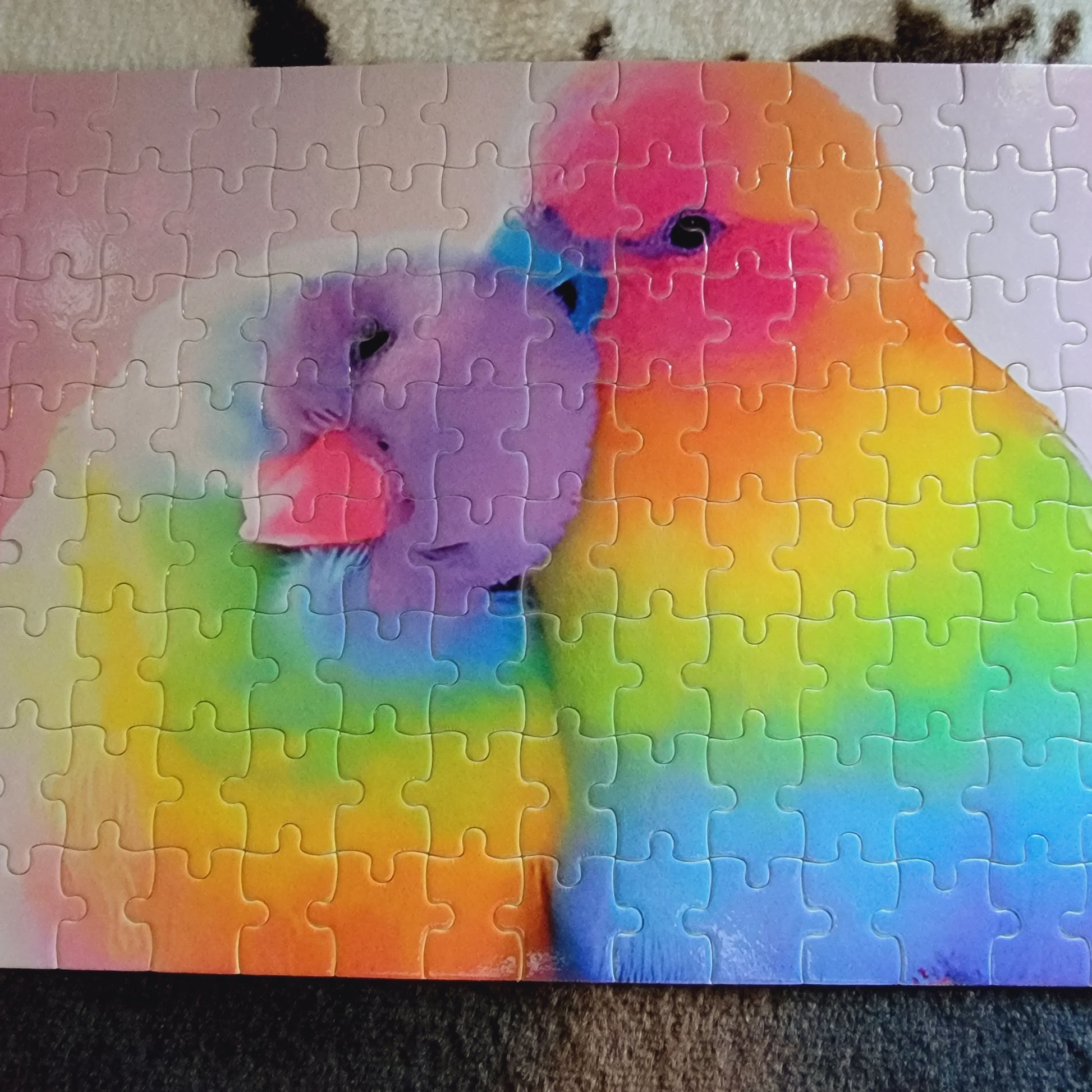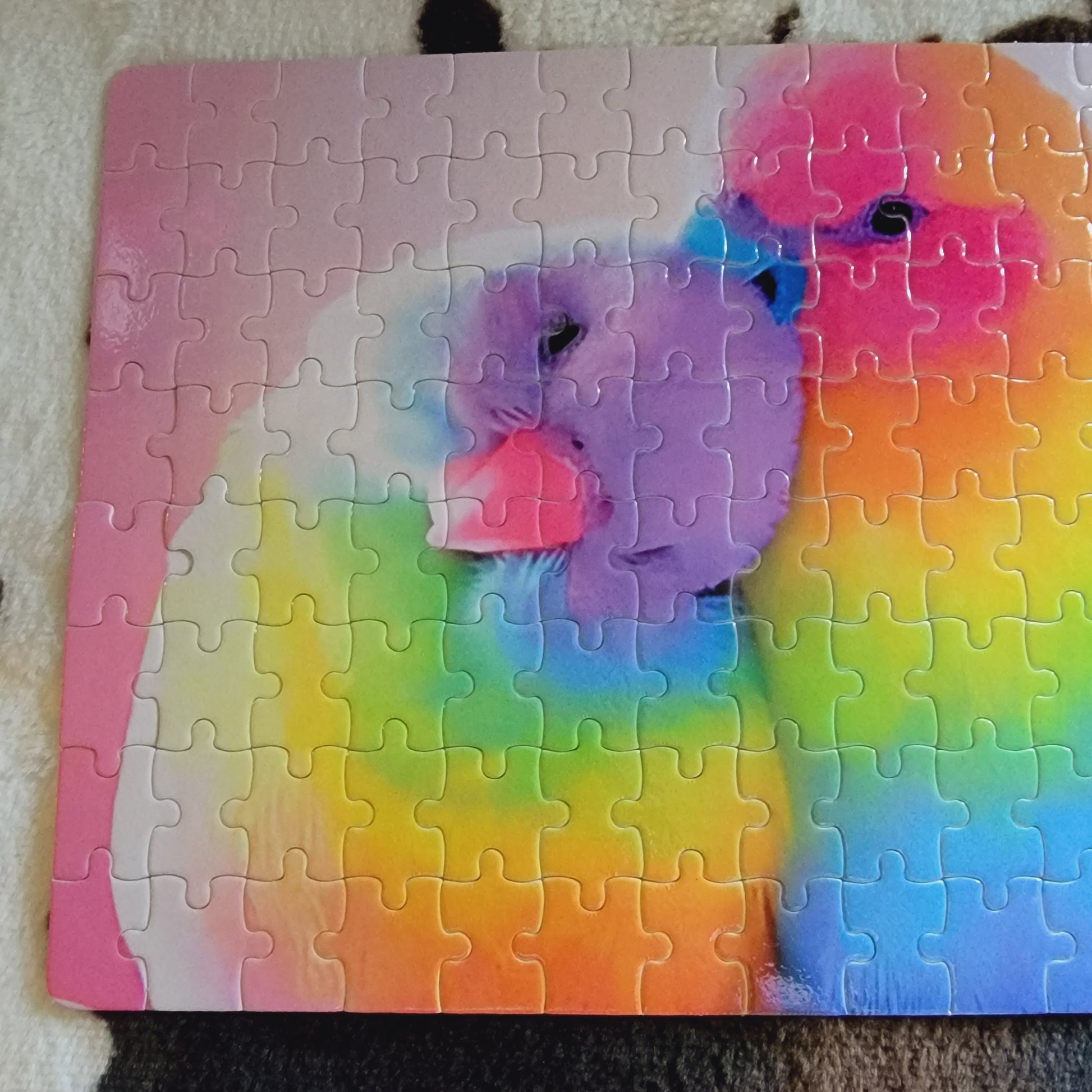 This vibrant 120-piece handmade jigsaw puzzle is ready for you to assemble! Perfect for decorating your space, challenging yourself, or gifting to a loved one, the 8x11" piece will surely bring joy. Dare to take on this delightful puzzle and bring cheer to your home!