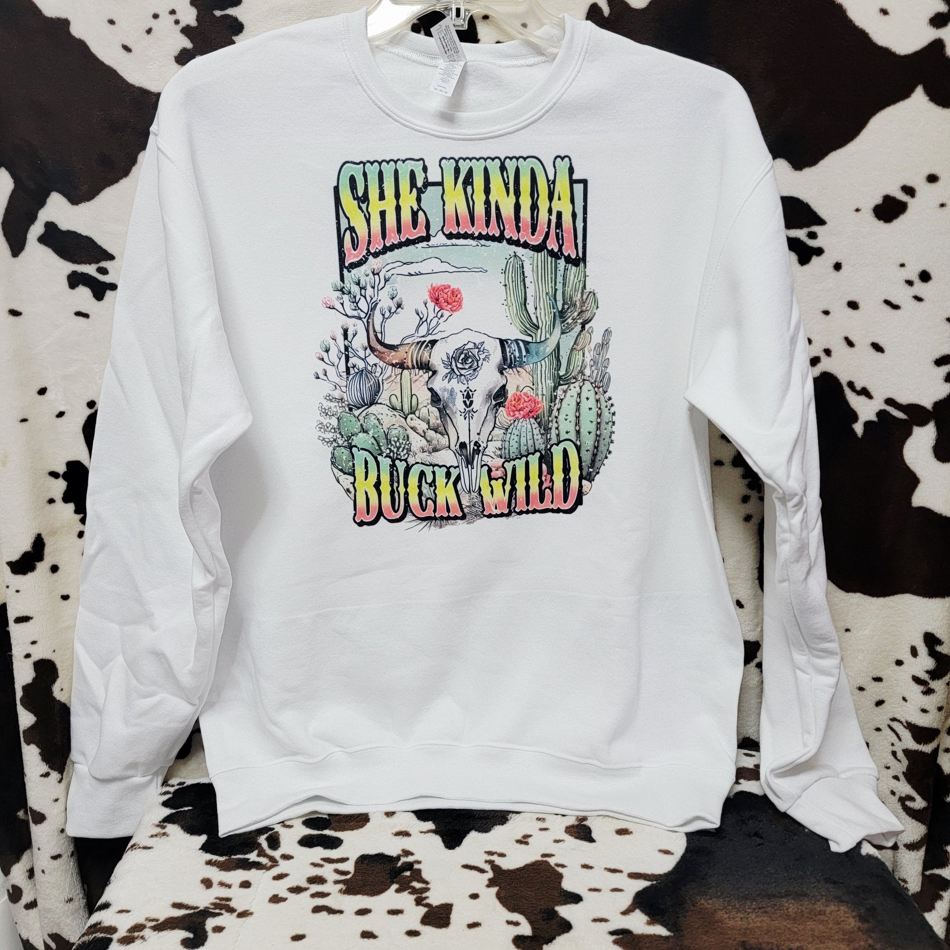 Shes Kinda Buck Wild Western White Sweatshirt