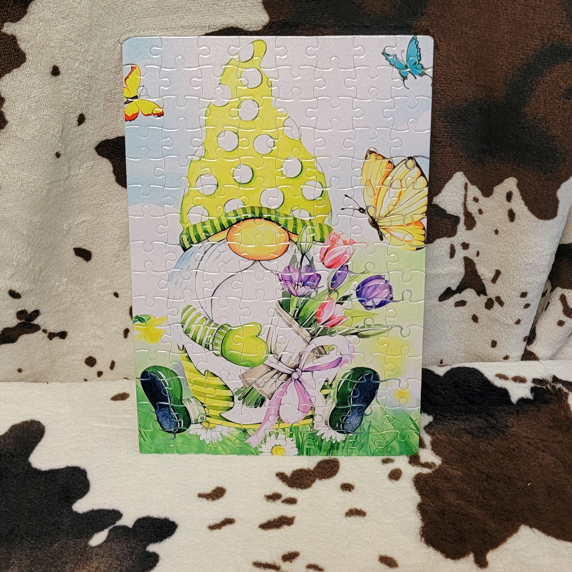 Solve a beautiful Spring Gnome puzzle with 120 individually handmade pieces. The perfect home decor piece, this jigsaw is sublimation printed with vibrant colors that you can enjoy in your free time. Challenge yourself and relax!