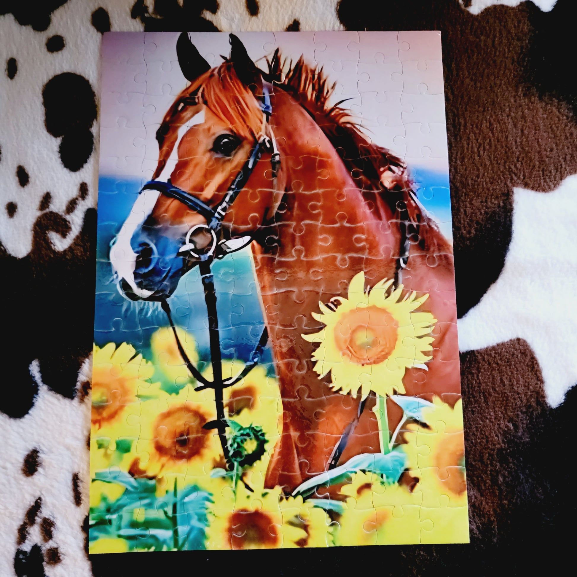 Solve a beautiful sunflower horse puzzle with 120 individually handmade pieces. The perfect home decor piece, this jigsaw is sublimation printed with vibrant colors that you can enjoy in your free time. Challenge yourself and relax!