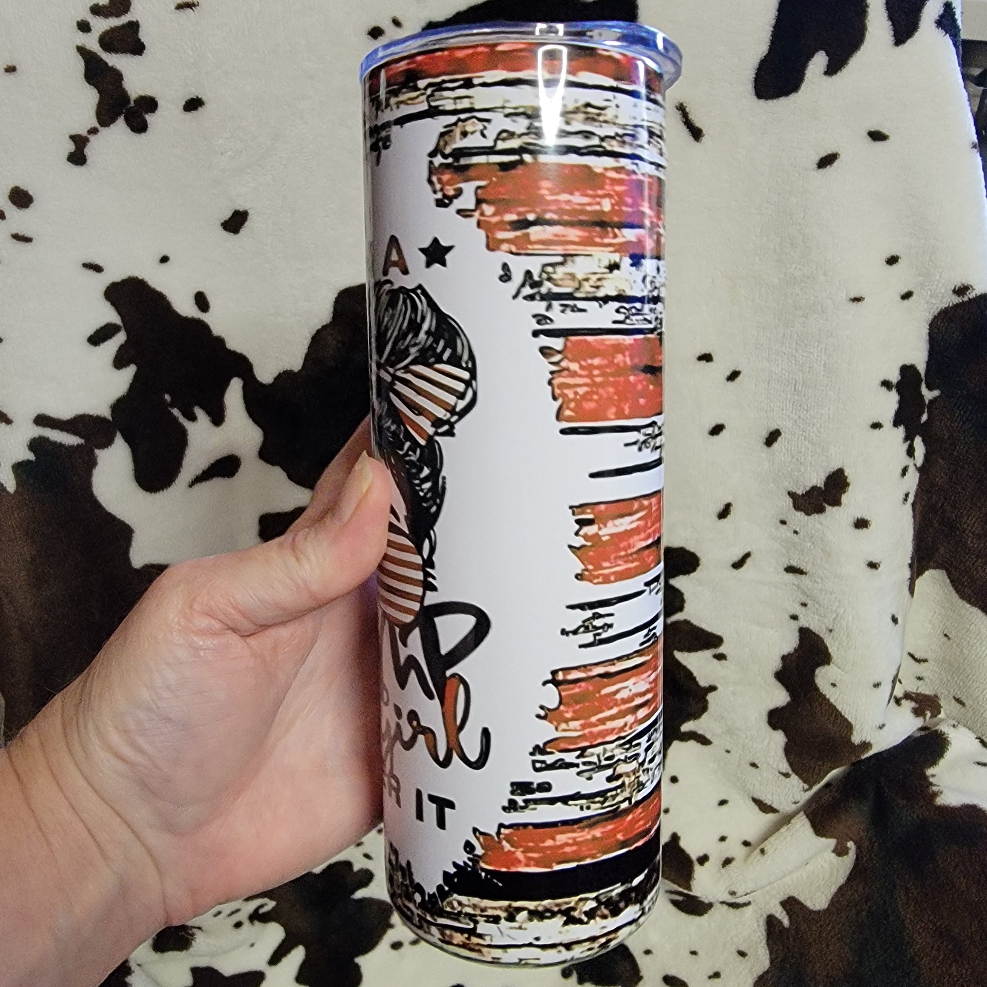 Be the envy of your friends with this beautifully handcrafted, custom 20oz skinny tumbler. It's made with stainless steel and boasts a stunning, eye-catching print. Perfect for both hot and cold beverages and insulated to keep your drinks at the perfect temperature. Comes with a lid, straw, and all the charm of handmade perfection!